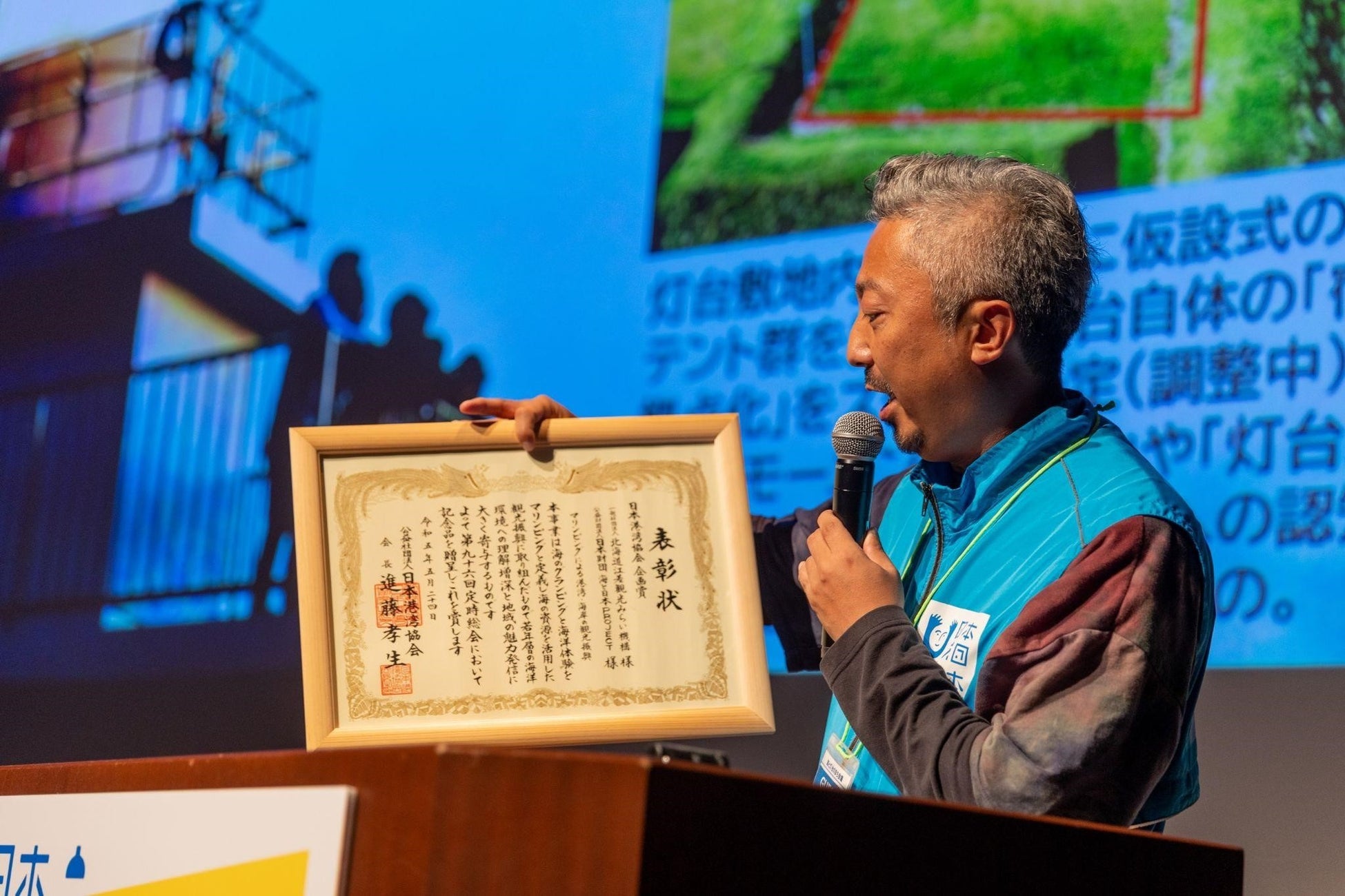 宮崎さんは結びに、「かもめ島マリンピング」の取り組みが「若年層の海洋環境への理解増進と地域の魅力発信に大きく寄与した」として、日本港湾協会から5月24日付で表彰を受けたことを発表。会場から大きな拍手が送られました。