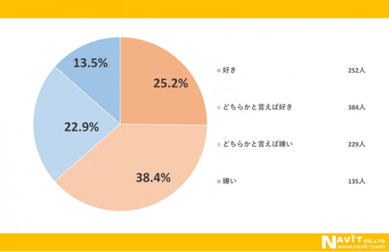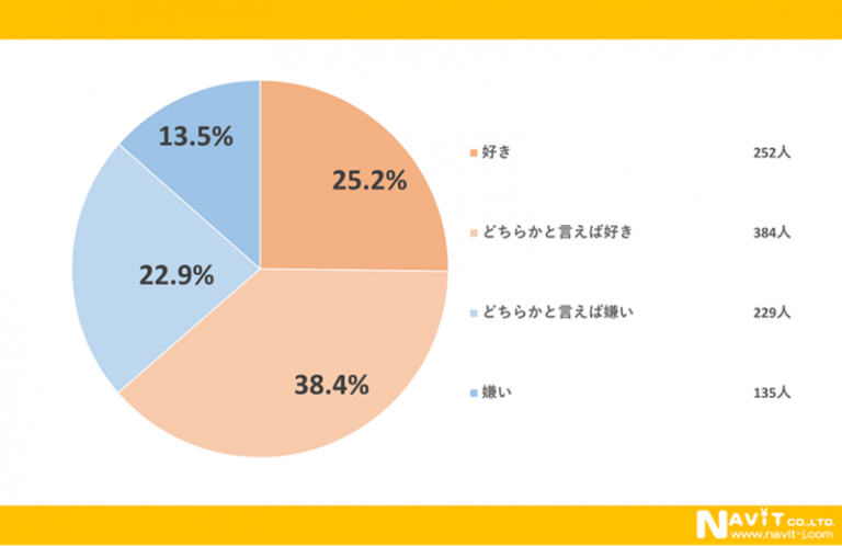 豆乳が好きですか?というアンケートに対して「どちらかと言えば好き」と回答された人が1番多く、38.4%という結果になりました。また「好き」と回答された人は25.2%となり、全体で半分以上の人は豆乳が好きなようです。