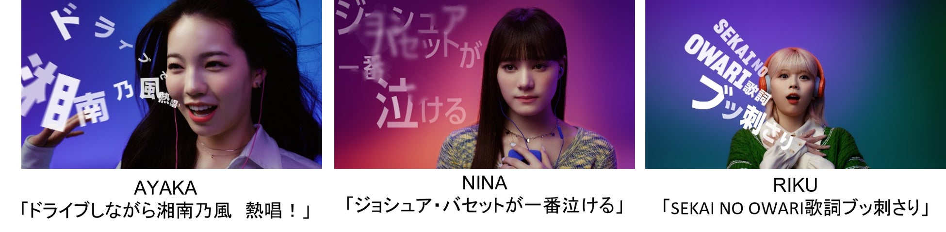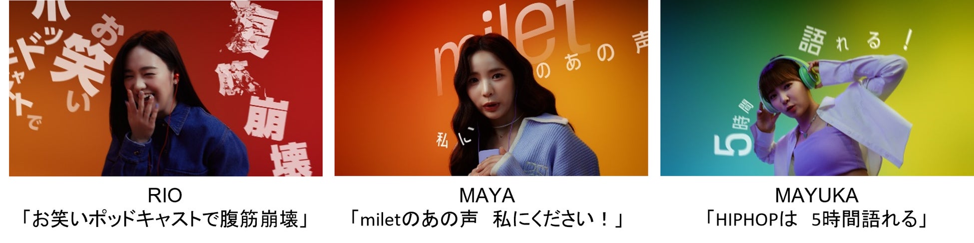 本日より放映される新TVCMは、NiziUのメンバーそれぞれへ好きな音楽やポッドキャスト番組についてアンケートを実施し、その回答をもとに制作されました。メンバーそれぞれが自身の好きな音楽やポッドキャストについて語る様子が描写されています。30秒CMでは、MAKOは「80年代ソング良き!」と世代を超えた音楽の楽しみを語り、MIIHIは「TWICEだけは全肯定」と推しアーティストを語り、RIMAは「ドリカムと書いて青春と読みます」と音楽に浸り、RIOは「お笑いポッドキャストで腹筋崩壊」と笑い、MAYAは「miletのあの声私にください!」と訴え、MAYUKAは「HIPHOPは5時間語れる!」とラップで語り、AYAKAは「ドライブしながら湘南乃風熱唱!」と自らの経験を語り、NINAは「ジョシュア・バセットが一番泣ける」と涙し、RIKUは「SEKAI NO OWARIの歌詞ブッ刺さり」と倒れこみます。また、15秒CMでは、「MIIHIの推しは実はback numberだった」「NINAは実はポッドキャストファンでTEDを聞いていた」「MAKOは80年代ソングへの熱い思いを語る」など、メンバーの意外な一面も! なお、本キャンペーンの広告はテレビ媒体の他に、デジタル媒体、SNS、屋外広告にも放映・掲出されます。