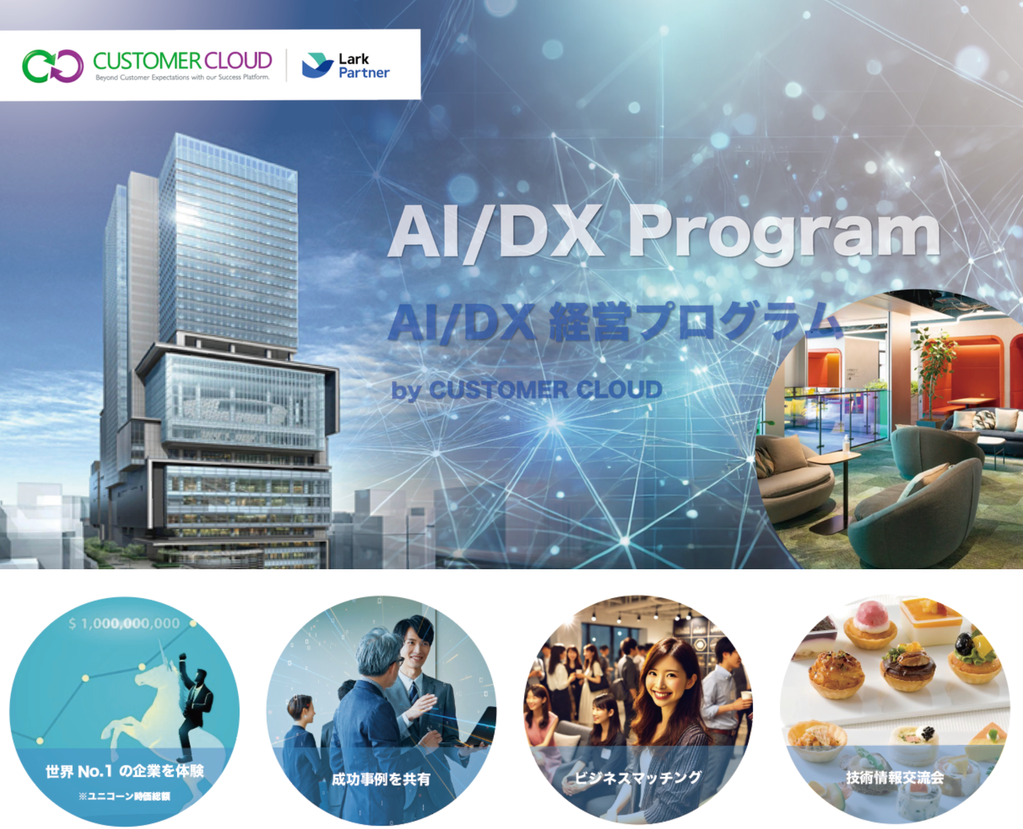 カスタマークラウドは、公式パートナーである最先端のDXツール「Lark」と、100万部突破の話題作で知られる「識学」の代理店として、独自のAI/DX経営プログラムを通じて企業の経営課題を解決し、DX変革をサポートしています。