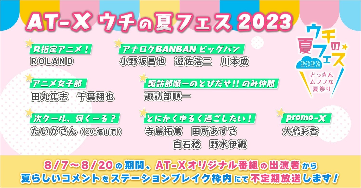 「ウチの夏フェス2023 どっきんムフフな夏祭り」開催!夏に見たいムフフなアニメ特集、「AT-Xアニメランキング」の放送など暑い夏は家(ウチ)でAT-Xを楽しもう!