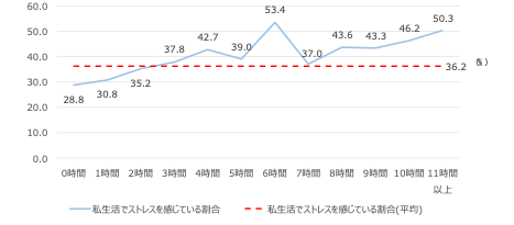 【図4】休日1日の平均家事・育児時間別の私生活でストレスを感じている割合