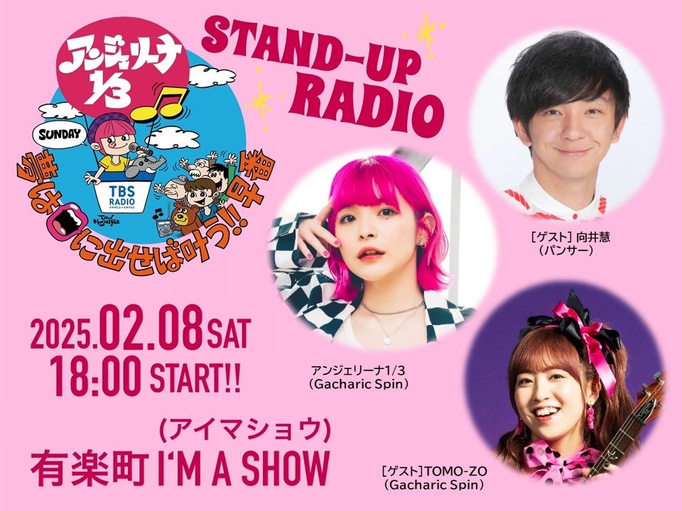 ガールズバンド「Gacharic Spin」のマイクパフォーマー、アンジェリーナ1/3(以下アンジー)がパーソナリティをつとめる『アンジェリーナ1/3 夢は口に出せば叶う!!』(毎週日曜日5:00~5:15放送)初となる、番組イベントの開催が決定しました!