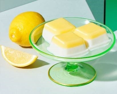レモンバターキャラメルを使ったとろりと甘酸っぱいレモンプリンと、北海道産の生乳を使ったつるりと濃厚なミルクプリンの2層仕立て。