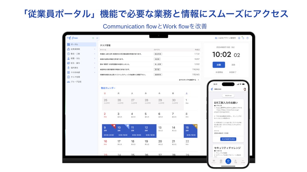 また、各freeeプロダクトで発生する業務や情報を統合してご利用いただける機能として、10月3日に「従業員ポータル機能」の提供も開始します。