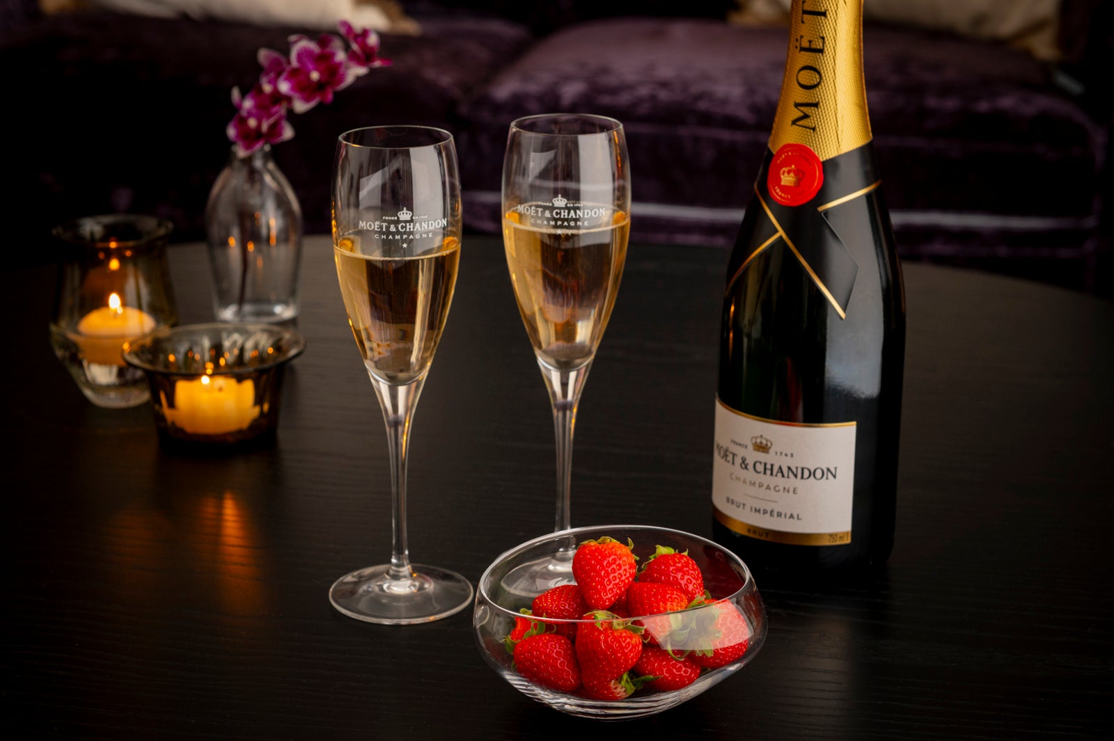 ウェルカムドリンクとして、シャンパンと軽井沢産いちごのペアリングをお楽しみください。