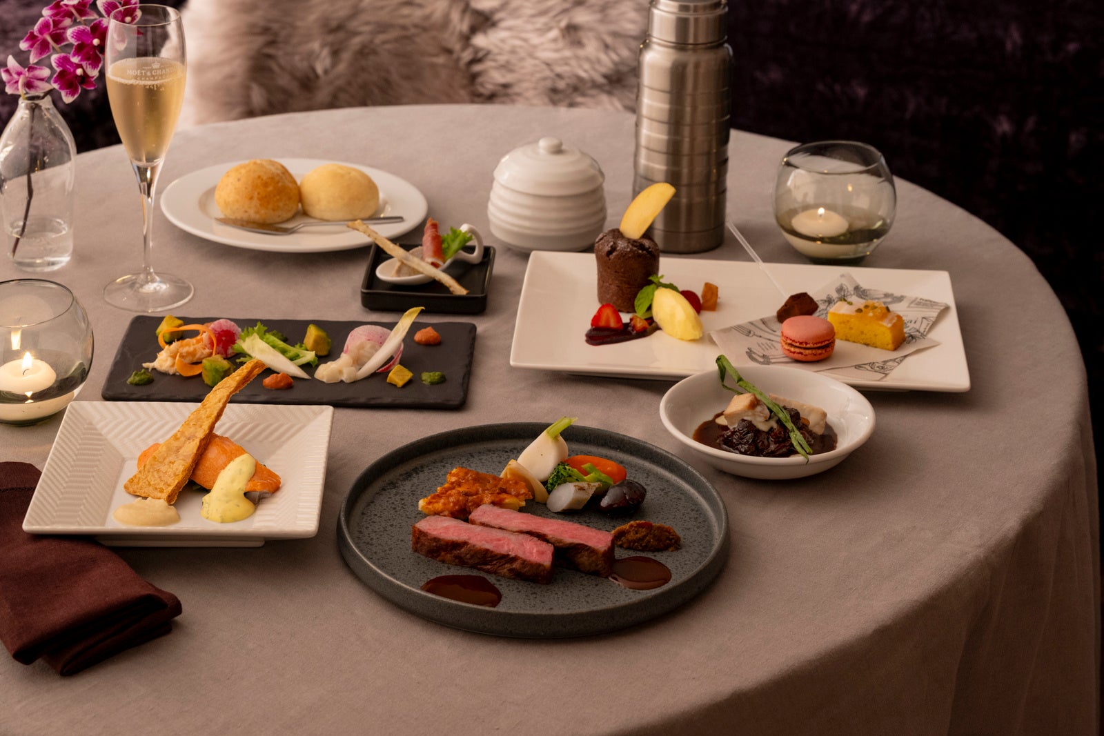 冬の軽井沢の静寂の中、いちごの芳醇な甘みとシャンパンの繊細な泡立ちが奏でるハーモニーに包まれ、贅沢な滞在の幕開けをお楽しみください。