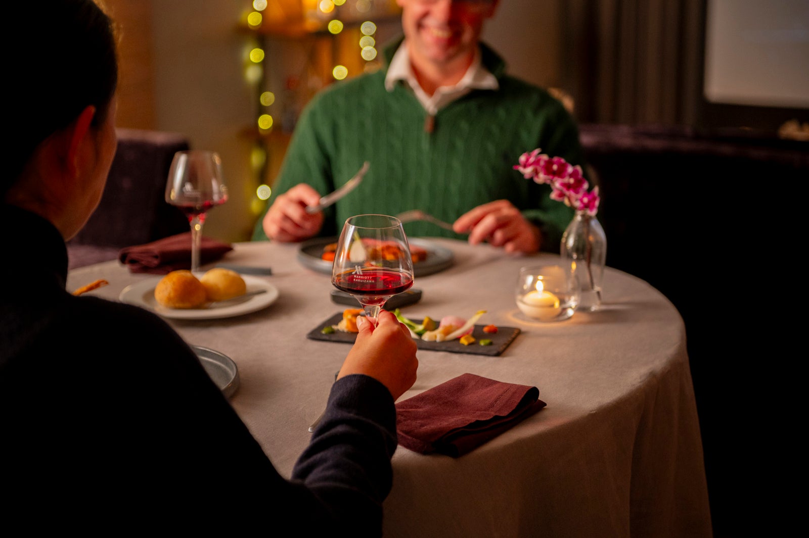 1.あたたかい客室で楽しむシェフ特製ディナーとソムリエ・エクセレンス厳選のワインセット