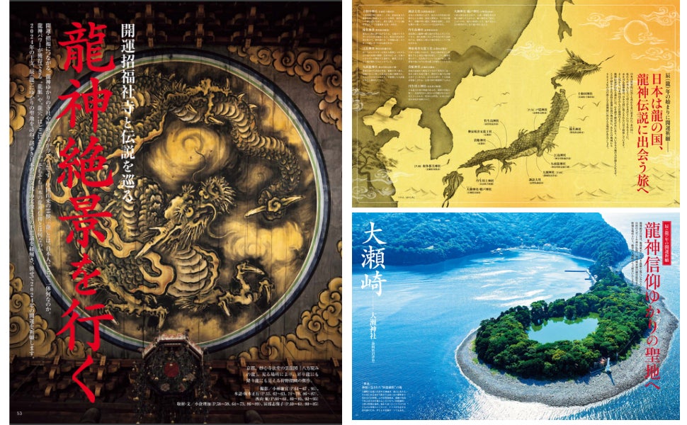 開運・招福 につながる、龍ゆかりの寺社や聖地巡りが今ブームです。中国由来の霊獣、”龍”とは、日本人にとっ て一体何なのか。龍神パワーが獲得できる ”龍脈”や”龍穴”はどこにあるのか。そもそも日本の龍神信仰とは何なのか。 2024年の干支、辰(龍)にゆかりの聖地を訪ね、謎多き日本の”龍文化”の実像とその不思議を紐解き、併せて2024年の開運を祈願します。
