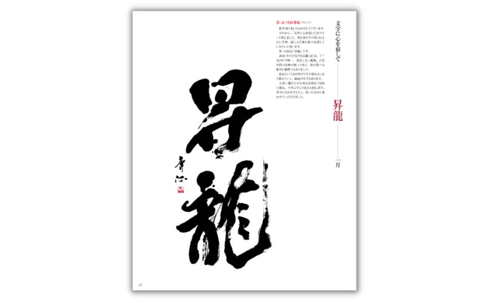 今号より、タレント・中山秀征さんの”書”の連載「文字に心を宿して」が1年間スタートします。第一回目は「昇龍」。