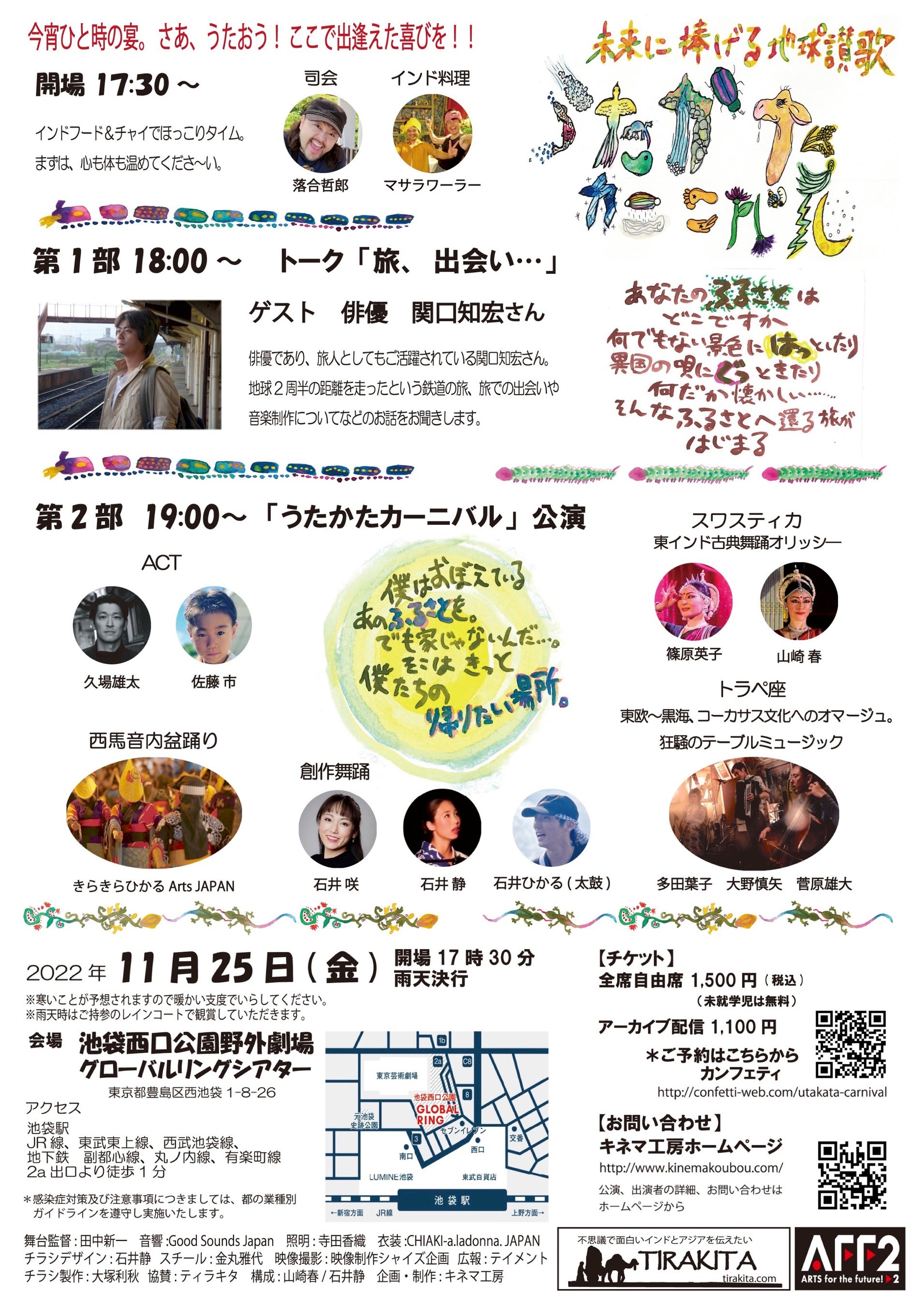 キネマ工房 野外公演 『うたかたカーニバル』が2022年11月25日 (金)に池袋西口公園野外劇場グローバルリングシアター(東京都豊島区西池袋1-8-26)にて開催されます。