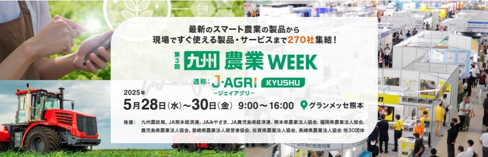 RX Japan株式会社(本社:東京都中央区、代表取締役社長:田中 岳志)は2025年5月28日(水)~30日(金)の3日間、グランメッセ熊本で「第3回 九州 農業WEEK(通称:J-AGRI KYUSHU)」を開催します。