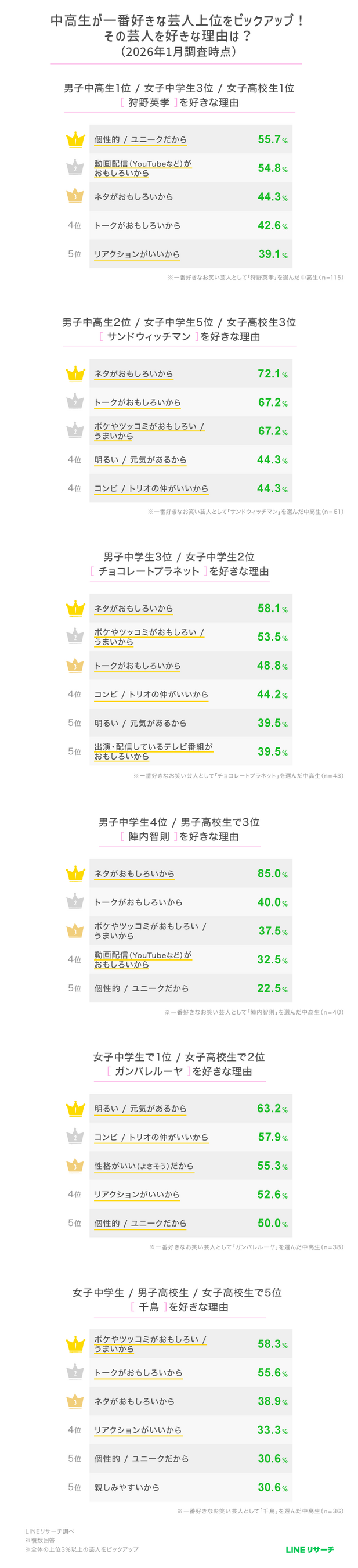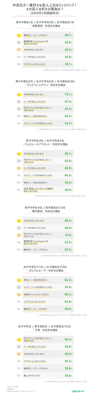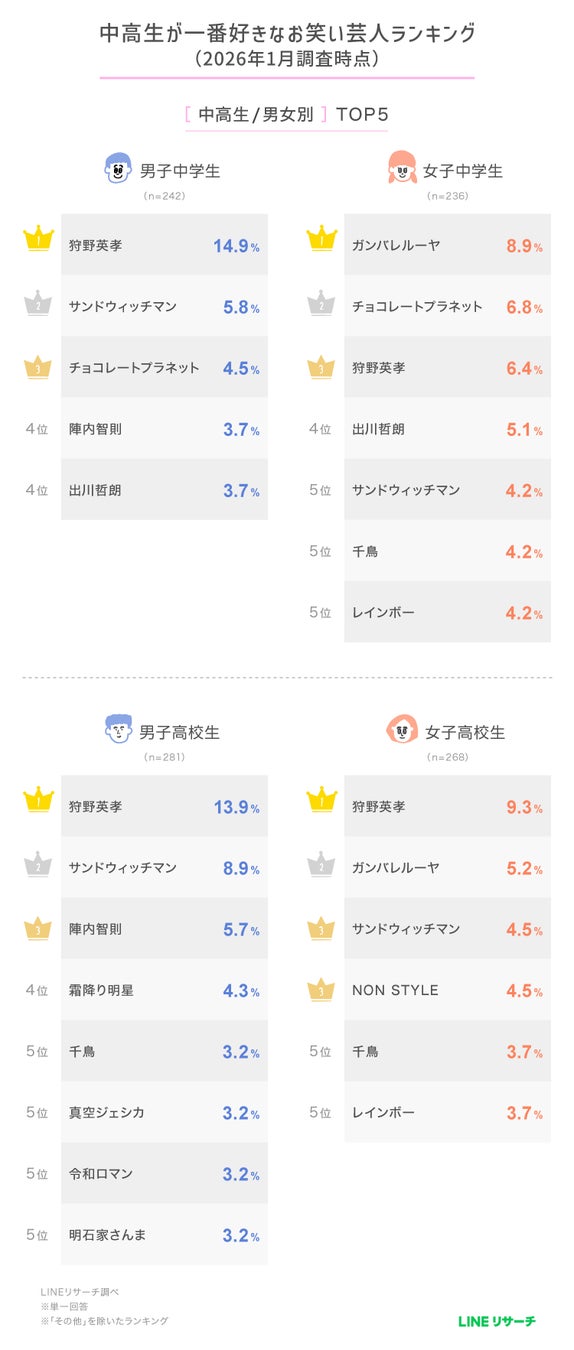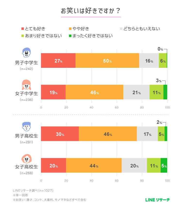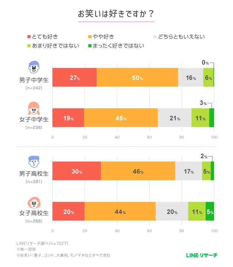 LINEリサーチ、全国の中高生を対象に、一番好きなお笑い芸人に関する調査を実施