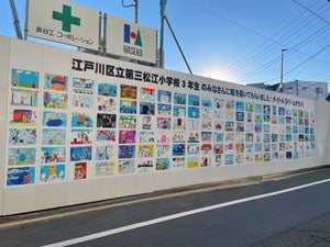 「プレミスト新小岩ルネ」の施工現場では、工事期間中(2021年11月~2023年1月まで)、仮囲いに江戸川区立第三松江小学校の3年生が描いた作品を展示しています。