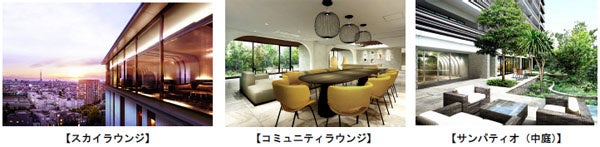 共用施設には、「隅田川花火大会」や「江戸川区花火大会」など8種類の花火大会が360度パノラマで鑑賞できる屋上テラス「エアリーテラス」や、エリア最高層(※2)となる15階に「スカイラウンジ」を設けました。また、リモートワークにも対応した「コミュニティラウンジ」や、ご入居者同士が交流できる緑豊かなサンパティオ(中庭)を設けるなど、ご入居者の多様なライフスタイルに応えます。