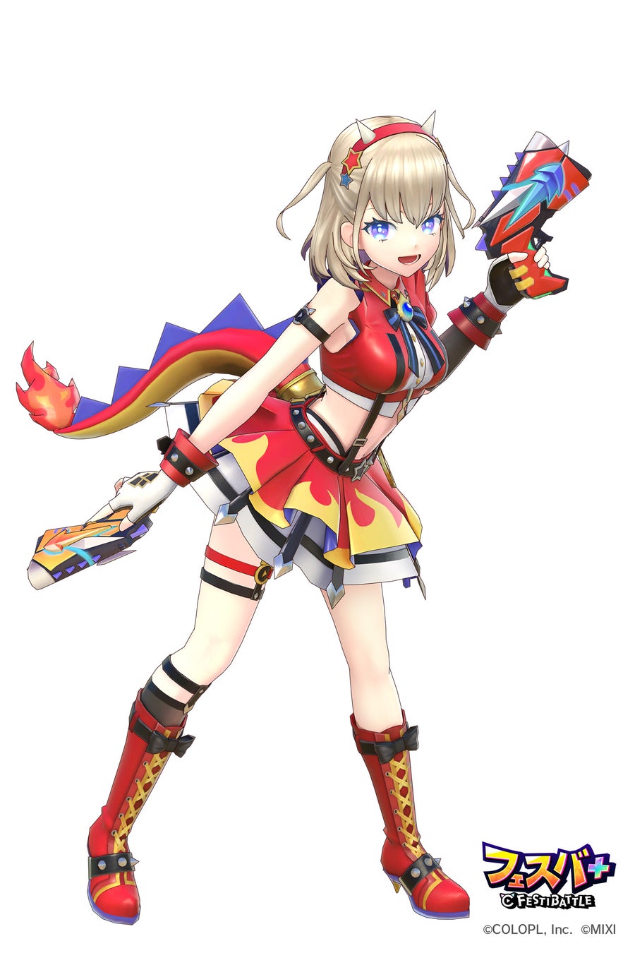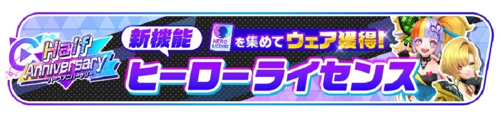 イベントの開催にあわせて、主役3人の新バトルウェア、新ウェポンチップ、専用アクセサリーが登場するガチャを開催しております。また、ゲームを遊んでポイントを貯めると報酬でバトルウェアなどが手に入る新機能「ヒーローライセンス」を実装いたしました。まだまだハーフアニバーサリー施策が続きますので、この機会にたくさん『フェスバ+』をお楽しみください。