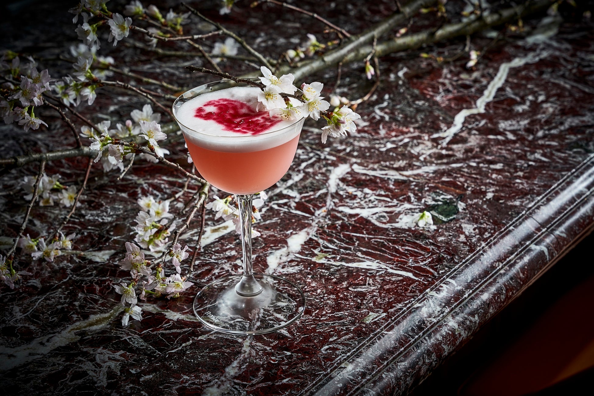 館内5階の重厚感あふれる「ザ・バー」では、桜の時期限定のカクテルをご提供。春の麗らかで希望に満ちた空を連想した季節のカクテルで、桜を思わせる美しいグラデーションで表現しています。日本酒をベースに、上品で爽やかな味わいに仕上げました。