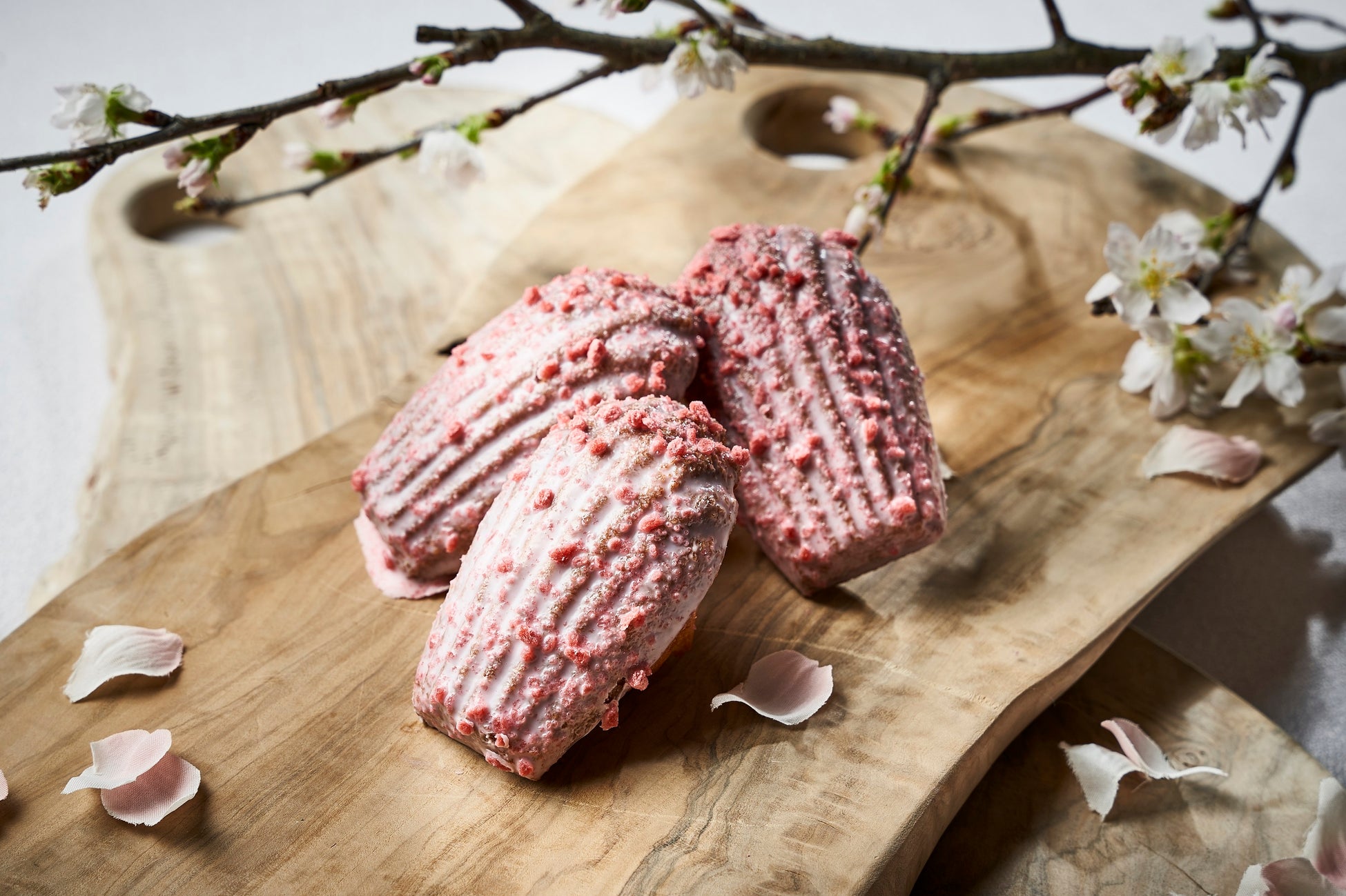 しっとりとした食感の桜フレーバーのマドレーヌ。トップには、桜の風味が効いた桜クランチが華やかに広がり、一口ごとに春の訪れを感じさせてくれます。口に広がる優雅な香りと繊細な味わいで、贅沢なひとときを。
