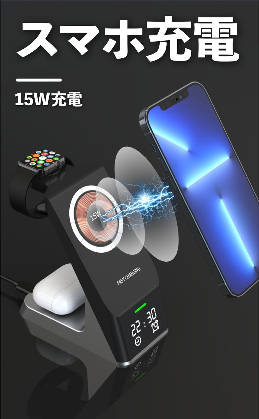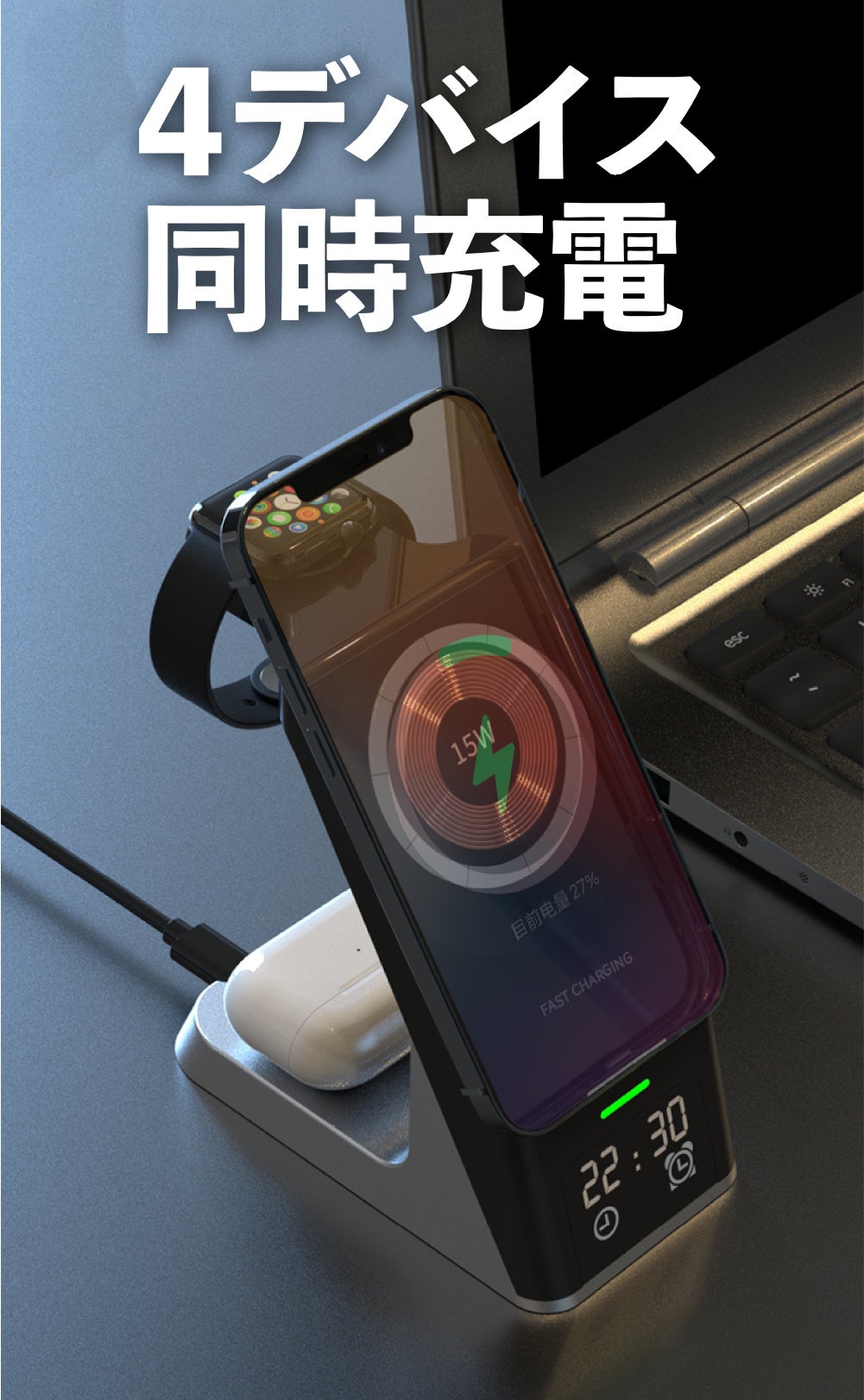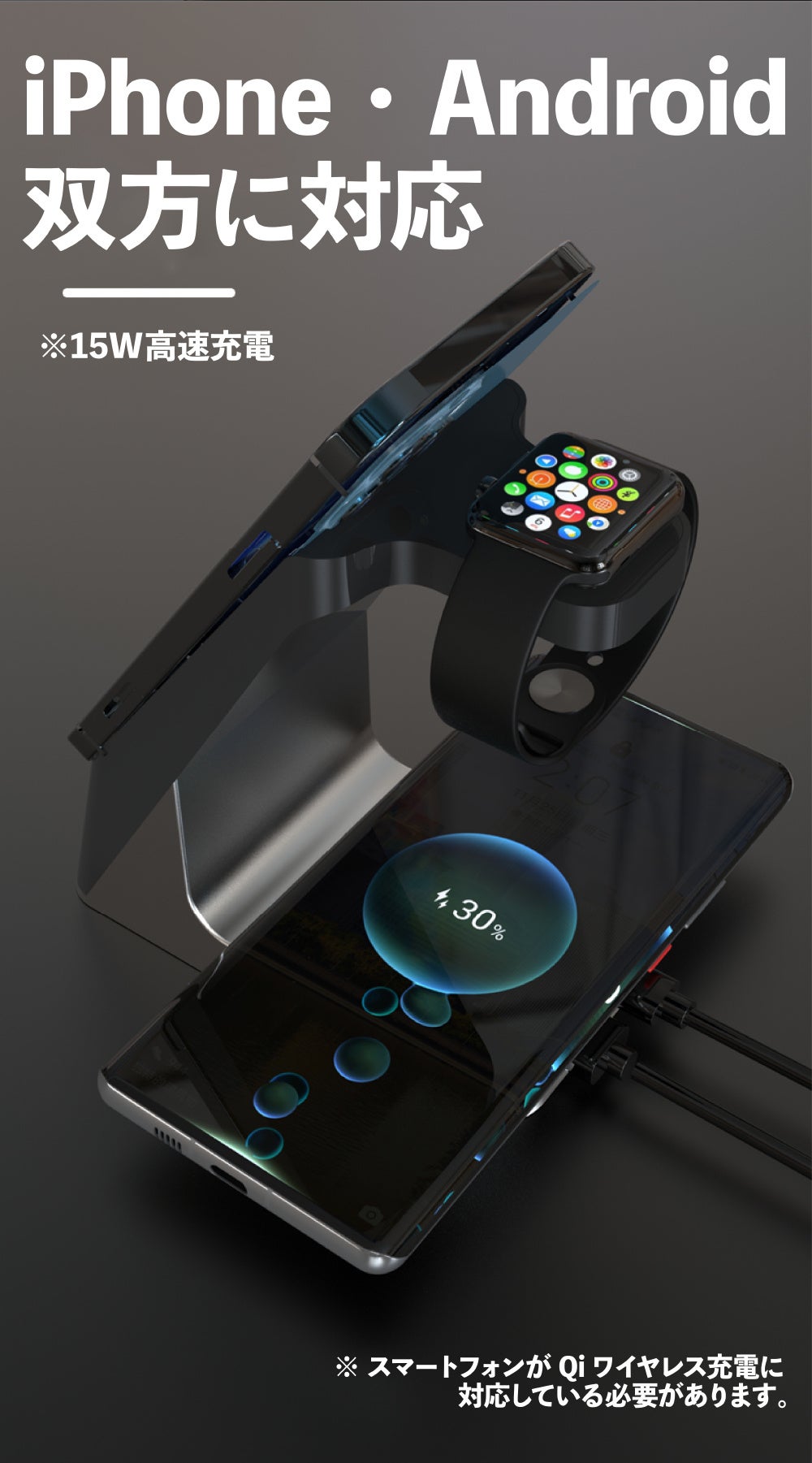 【最大15W急速充電/4つまでのデバイスを同時充電/Android等Qi対応機器も充電可能】