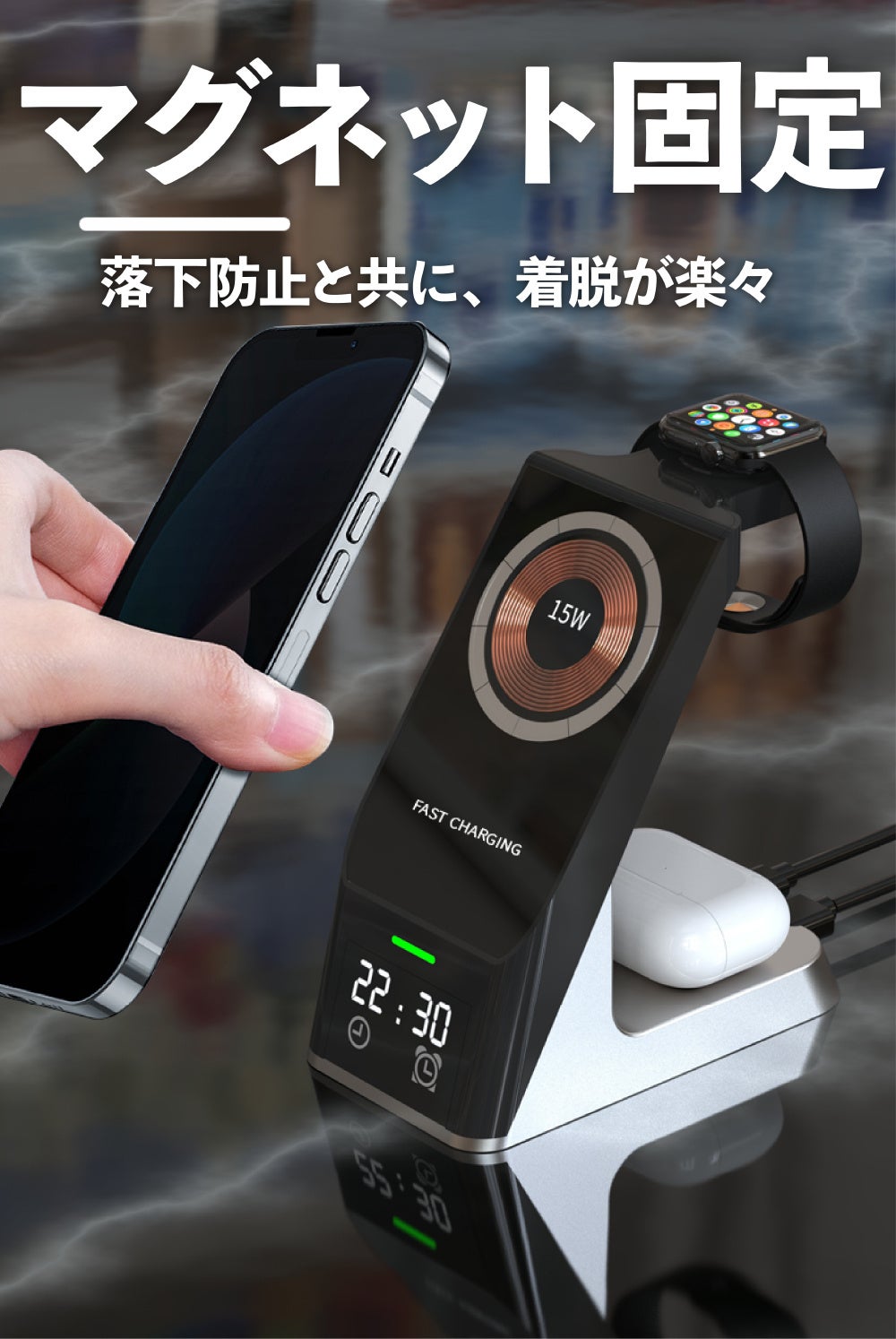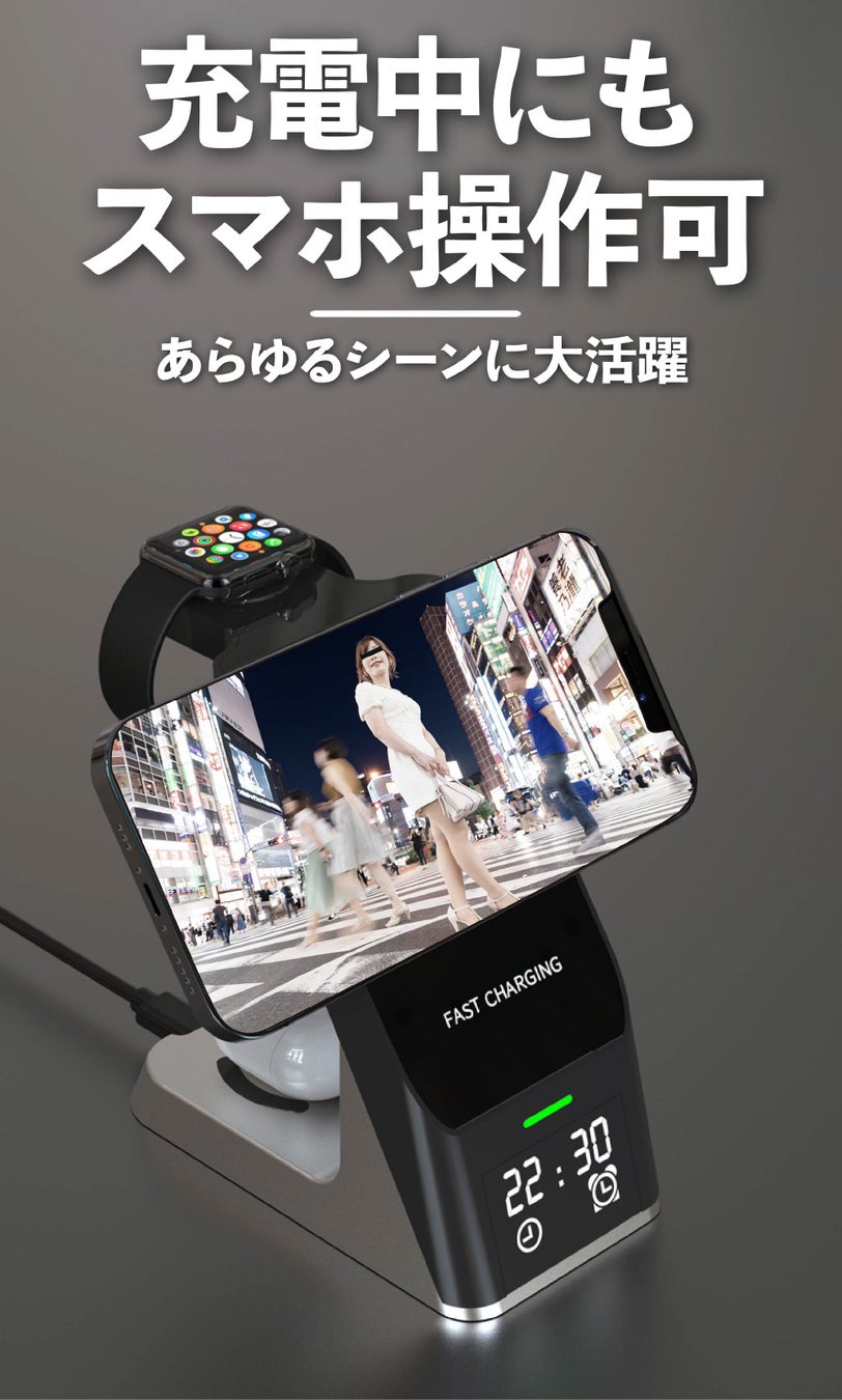 iPhone・AirPods・Apple Watchを一気に充電!目覚まし機能つきでベッドサイドに最適なワイヤレス充電器「GeeHaste」をガジェットストア「MODERN g」で販売開始