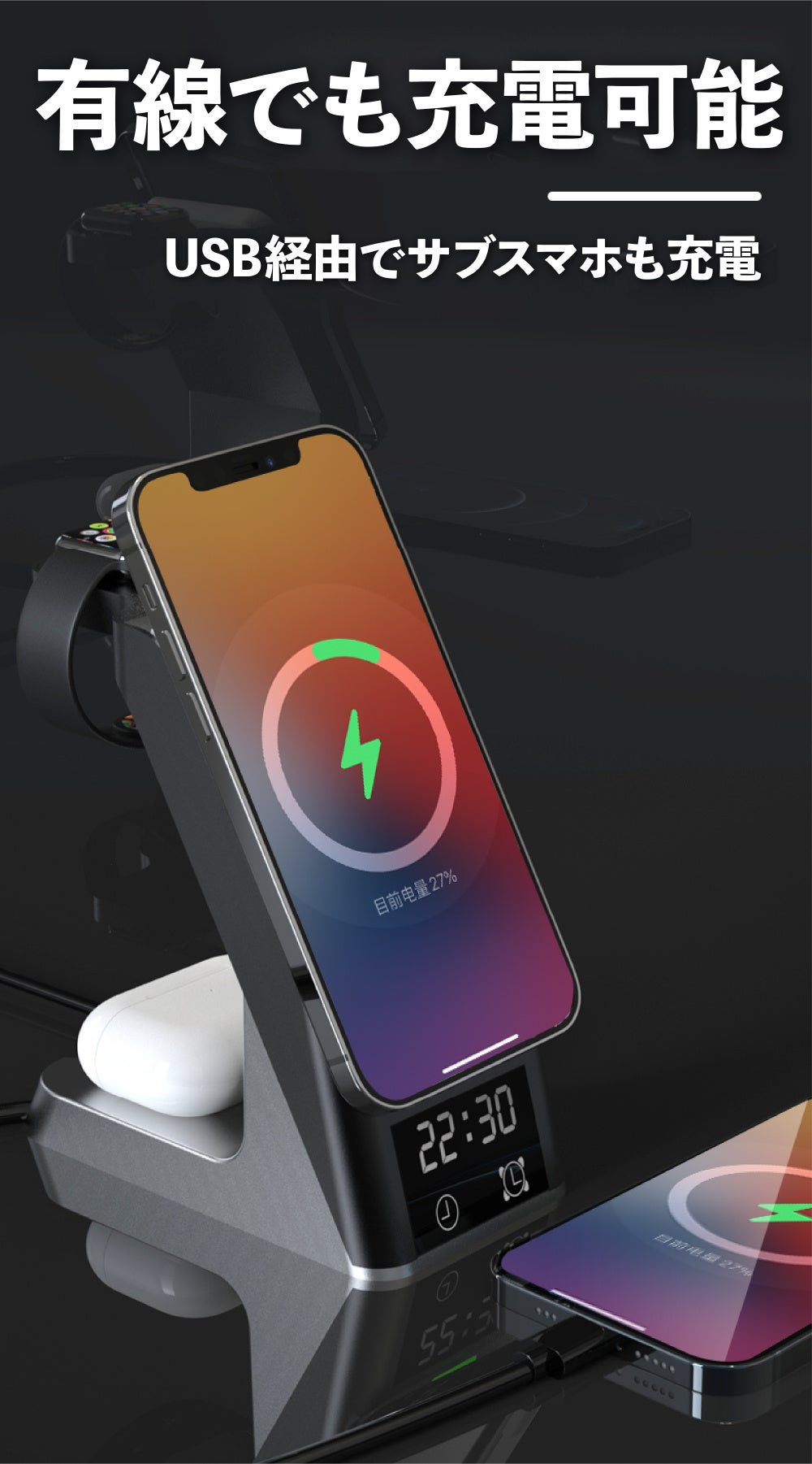枕元に置いておくだけで最大4台同時充電ができる上に目覚ましにもなってくれるので、あなたの日常がもっと便利で快適になるでしょう!