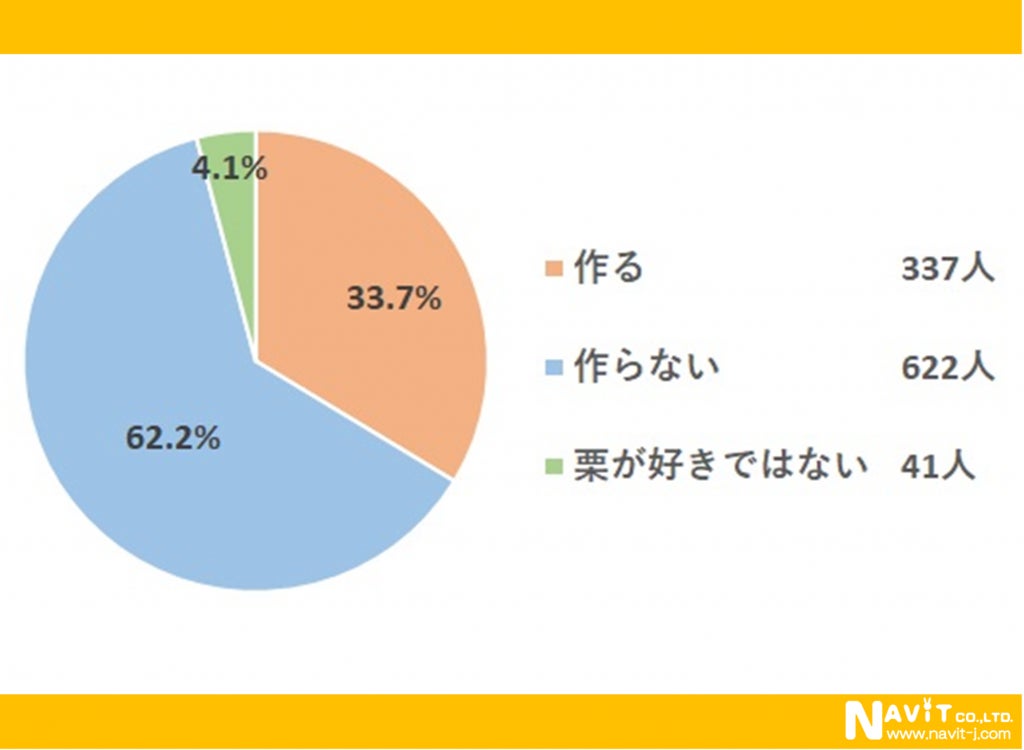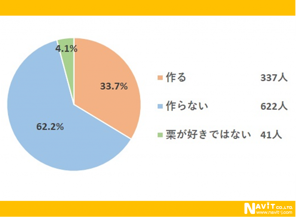秋に栗を使った料理を作る人は337人でほぼ3分の1。「作らない」人は622人と意外に多いですね。