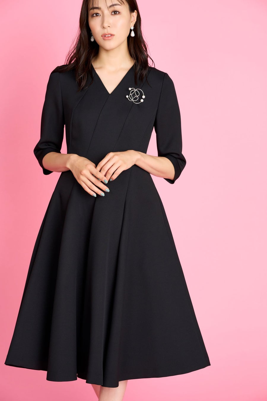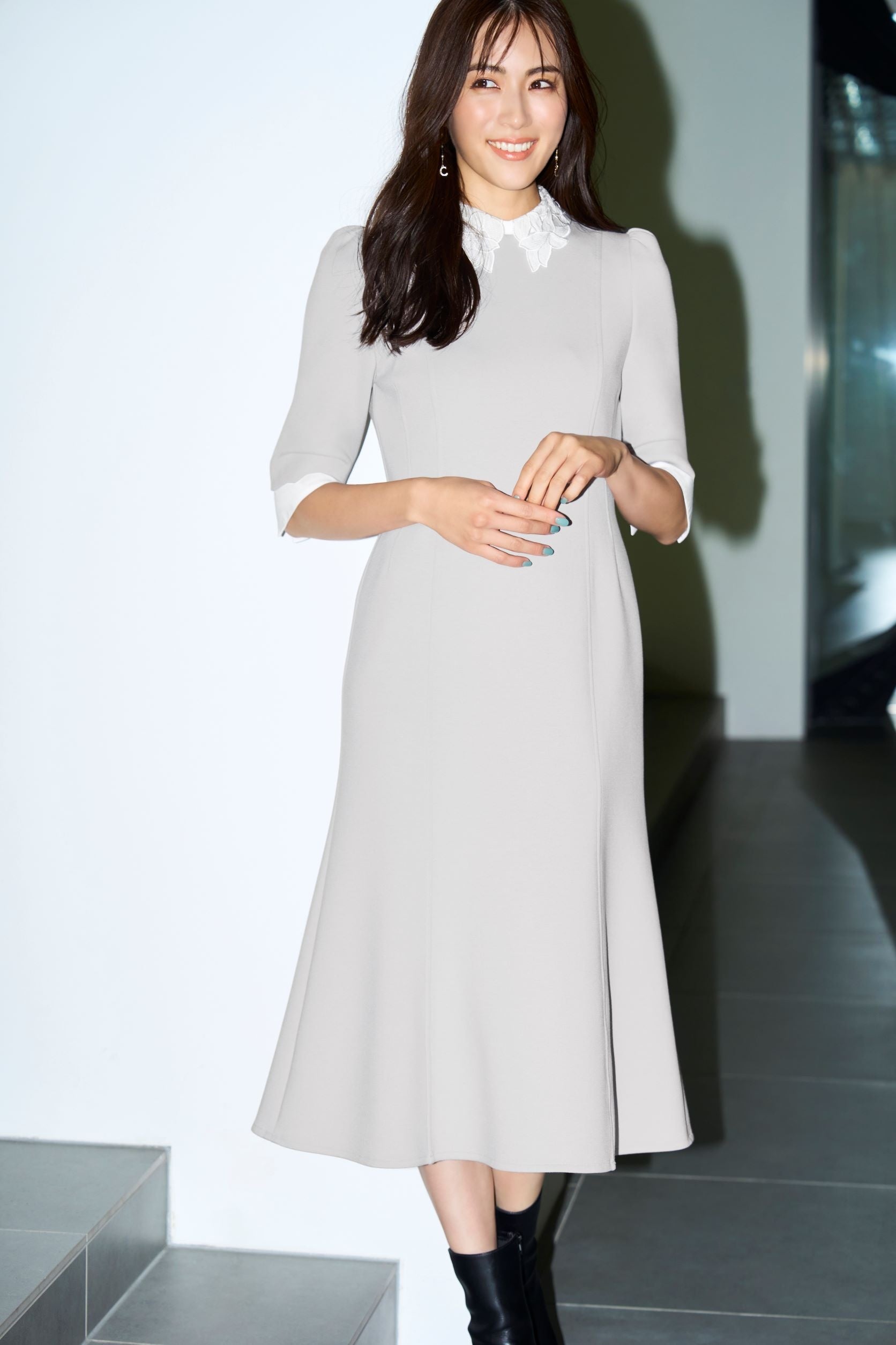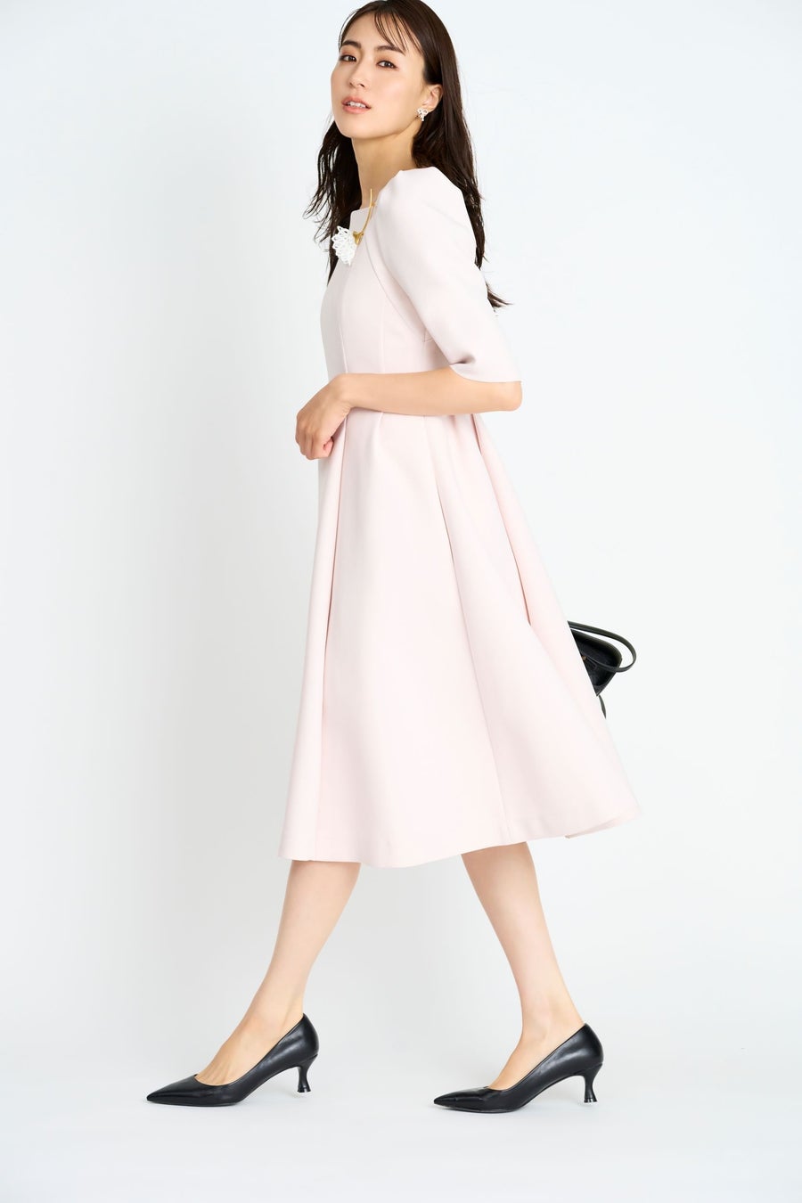 「綺麗なフィット&フレアラインのワンピースって、どんなフォーマルな場にも着て行けますよね。これは生地がシャリッとしてシルエットにもメリハリがあるので、服が身体にまとわりつかず、着心地もいいです」