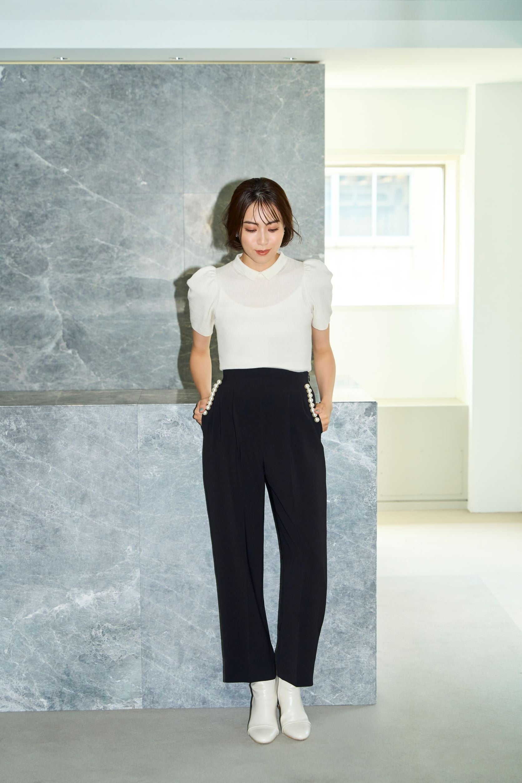 「普段からパンツでセレモニーに参加することが多いので、パール付きのパンツと衿つきのトップスはとても使い勝手がいいと思いました。素敵なオケージョン服を買っても出番が少ないのは残念なので、これならそれぞれデイリーにも着られてお得感もあります」