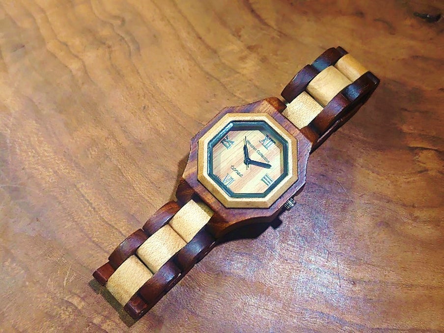 斬新なフォルムと木素材が、着物に着用するブレスレット時計として女性の心を捉えるデザイン。遊び心を求める洒脱な大人男性にも人気を博しています。