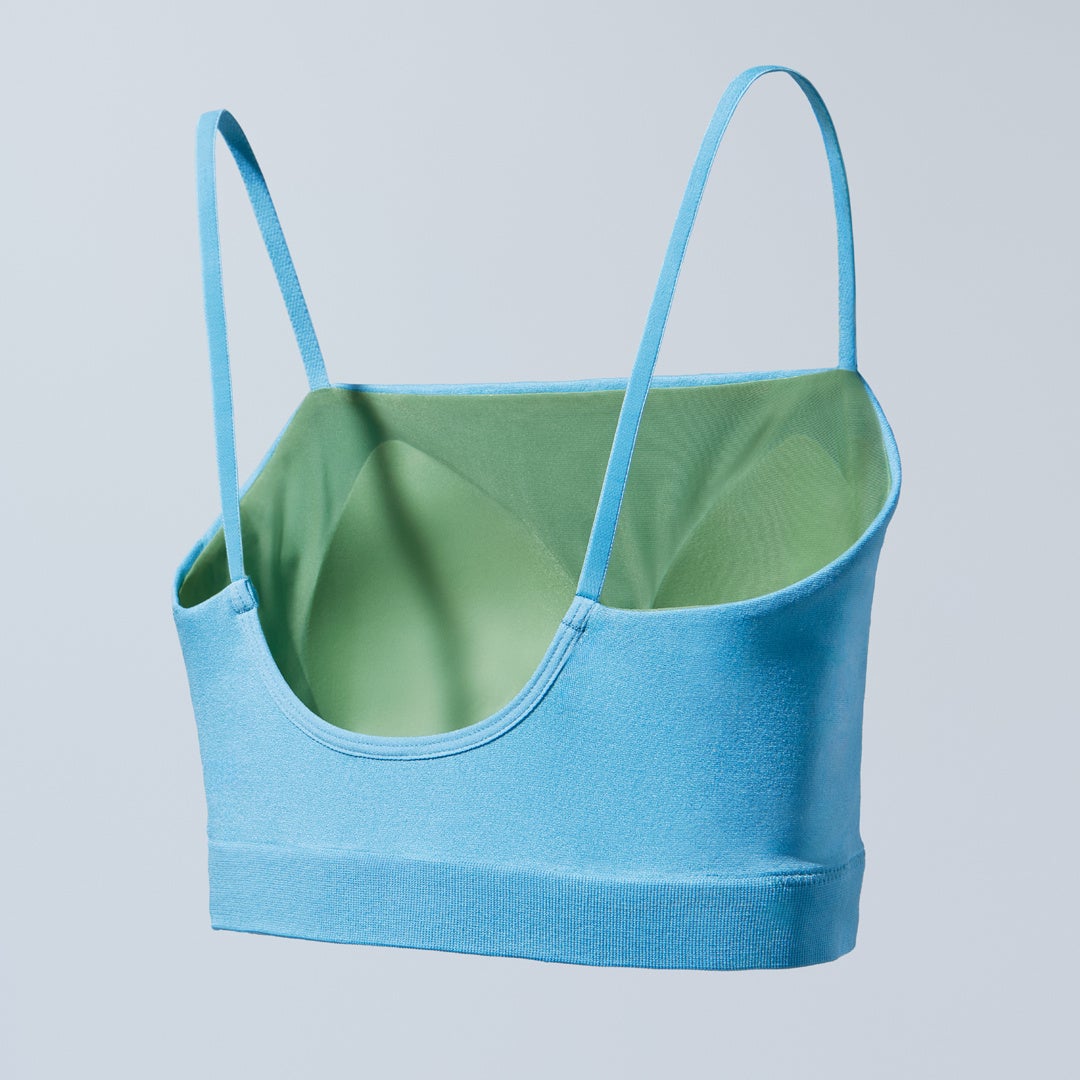 【内容】"下着でありながら、服としても着られる"ことをコンセプトに独自開発の仕様で快適さを追求したデザインの「ブラウェア」です。一体型になったカップ付きブラで、バスト肌側に縫い目がなく、滑らかな肌あたりが特徴です。表生地と裏地の配色にもこだわり、インナーとしても、ファッションアイテムとしても活躍します。