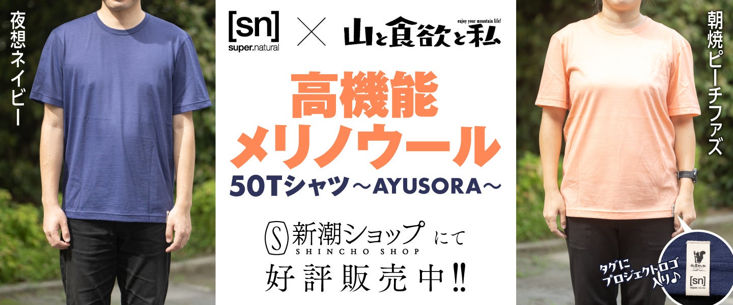 [SN]×『山と食欲と私』高機能メリノウール50Tシャツ~AYUSORA~(夜想ネイビー)
