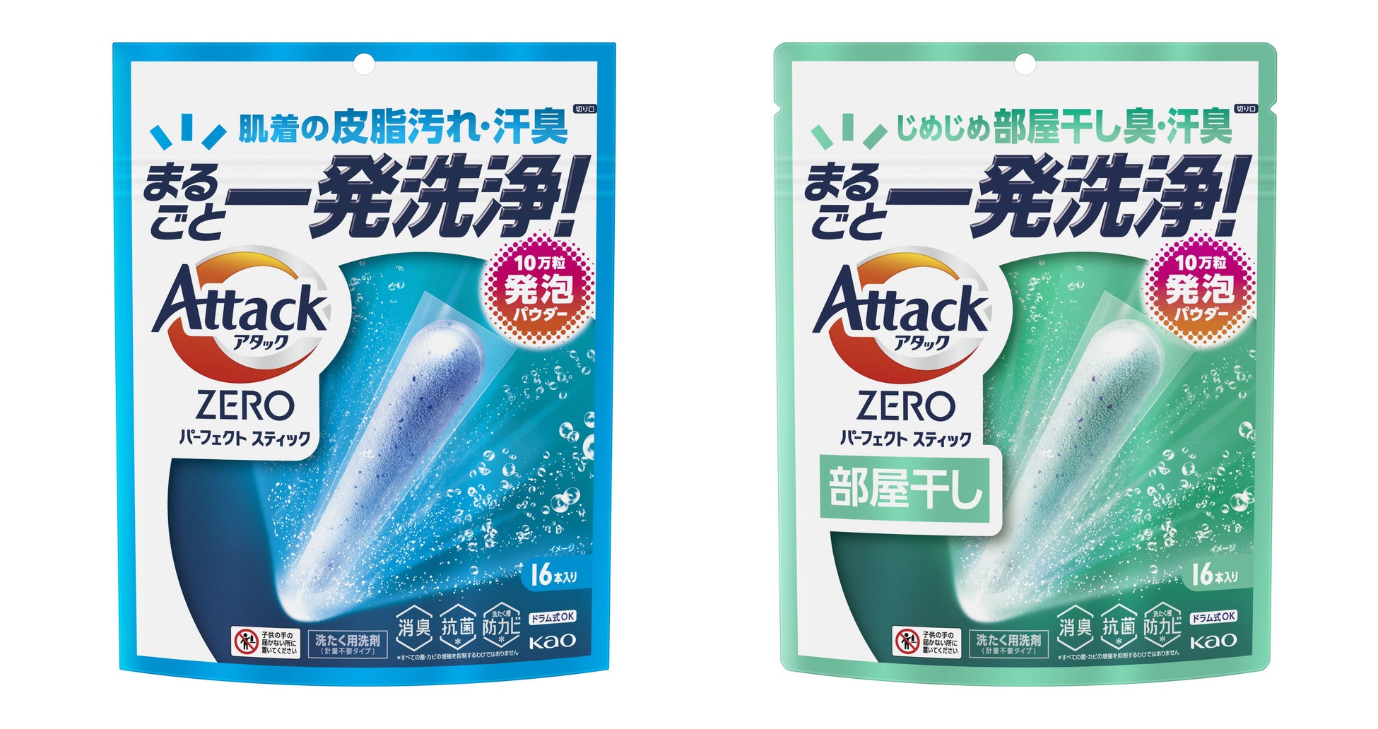 10万粒の発泡パウダーが一気に広がる!汚れ・ニオイ*1 まるごと一発洗浄 「アタック ZERO パーフェクトスティック」 2025年3月22日 シリーズ初の改良新発売