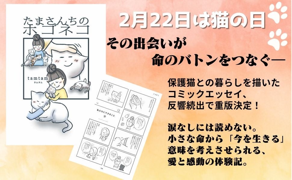 書籍『たまさんちのホゴネコ』の重版&2月22日の「猫の日」を記念し、本書をご購入下さった方の中から抽選で、著者のtamtamさんがあなたの大切な愛猫やご家族を漫画やイラストで描いてくれるSNSキャンペーンを開催いたします。下記概要をご一読の上、ふるってご応募ください。