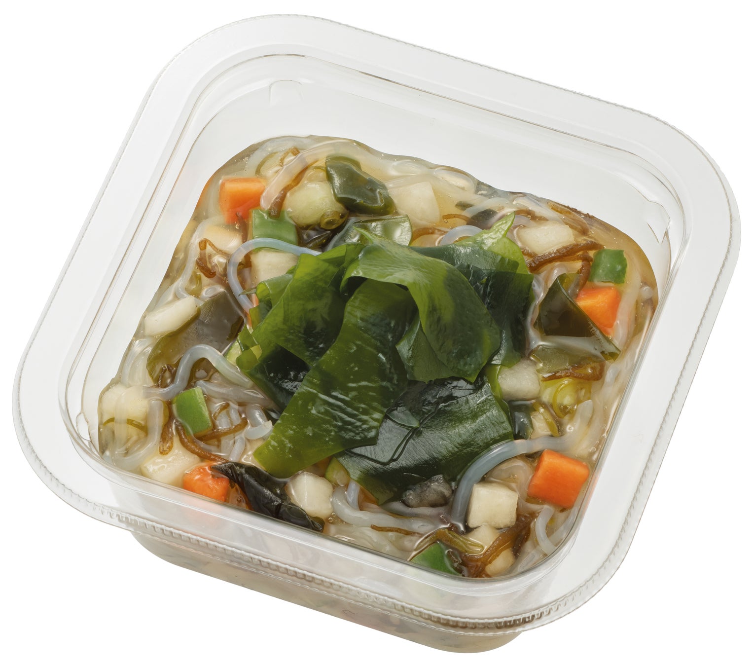 【内容】肉厚な歯ごたえの三陸産わかめと、粘り気のある三陸産めかぶを、春雨としらたきと一緒に柚子風味のたれでつるつると食べるサラダです。