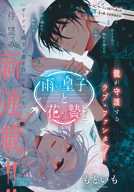 「ザーフィラ陛下と黒と白」のもといも、待望の新連載!「雨の皇子と花の贄」がカラーつきで登場!
