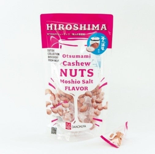 第一弾でご好評頂いた「おつまみカシューナッツ」の新フレーバー。カリッと香ばしいカシューナッツに瀬戸内海の自然が育んだ”海人の藻塩”で味付けをしました。”海人の藻塩”は、自然豊かな呉市蒲刈島で、「藻塩焼き」と呼ばれる伝統技法により製塩されます。海藻のうま味・ミネラルが凝縮されたまろやかな味わいが特徴であり、お酒のお供に、お子様のおやつにもピッタリな一品です。