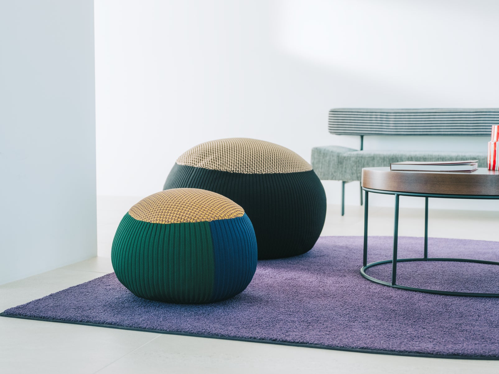 座面はコンピューターニッティングによる凹凸のある編み地、側面はリブ編みにすることで、座ったときには身体をしっかりと支える安定感を兼ね備え、定番モデルとはまた違った良さを実感できます。