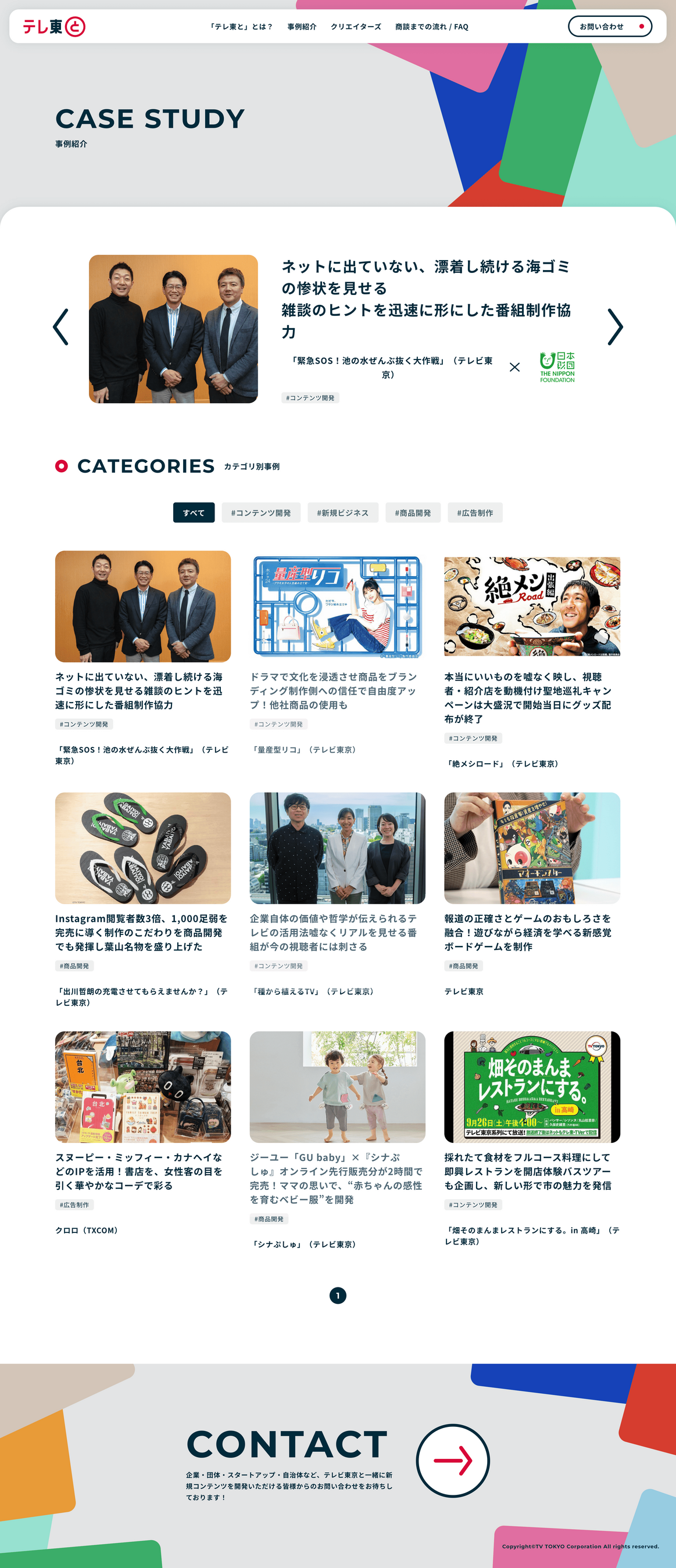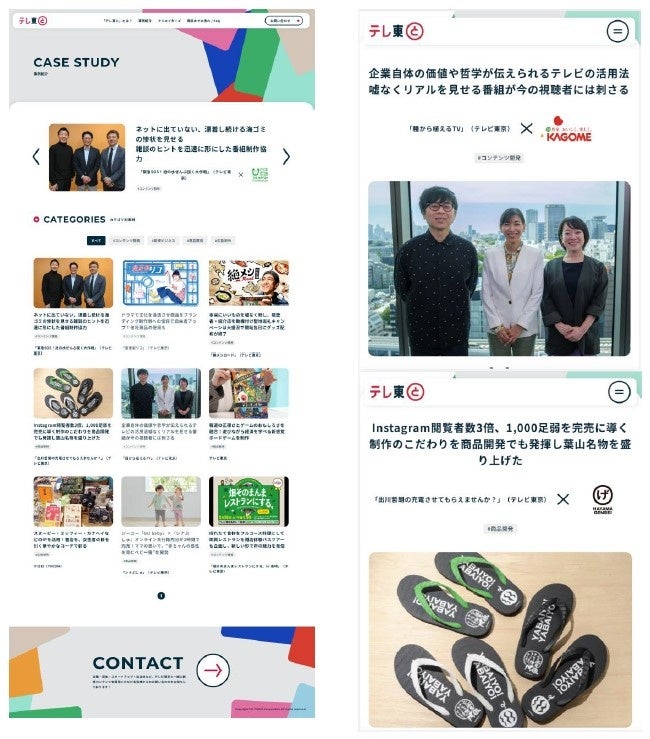 リニューアルしたホームページでは、実際にテレビ東京と連携した日本財団、カゴメ、バンダイスピリッツなどとの事例を動画で紹介。また、テレビ東京グループのプロデューサーや各事業担当者紹介などを掲載しています。様々な企業とテレビ東京が「一緒に新しいものを創り出していく」サービスの紹介ページとして、これまで以上の丁寧さでお伝えします。