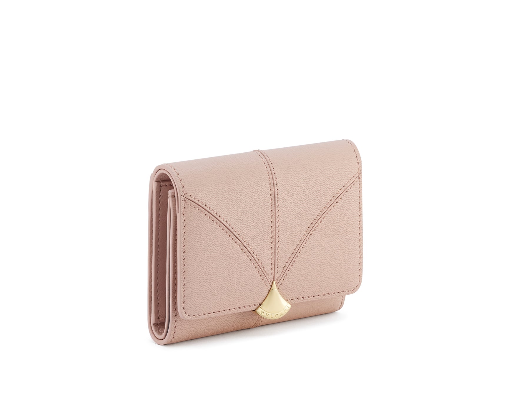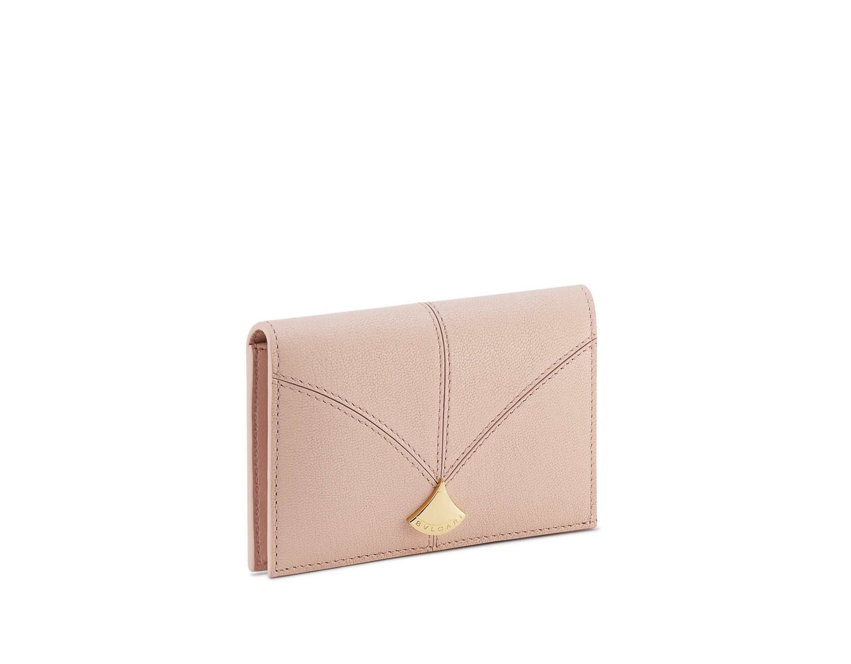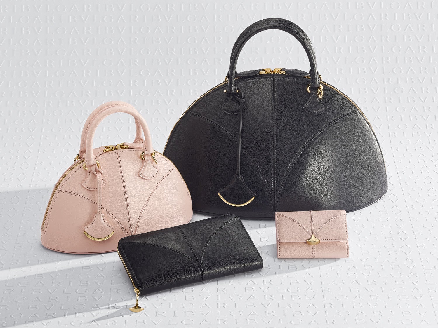 本コレクションから展開される2型のウォレットそして1型のカードホルダーには、ローマのカラカラ浴場の扇形の多色モザイクを彷彿とさせる、 “カラ” モチーフの曲線が洗練されたステッチが上質なゴートレザーに巧みに表現されています。また、ブルガリのロゴが刻印された煌びやかな装飾がクロージャーにあしらわれ、カラーリングはソフトなスターローズピンクそしてシックで優美なブラックで展開されます。