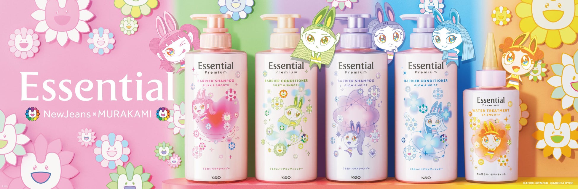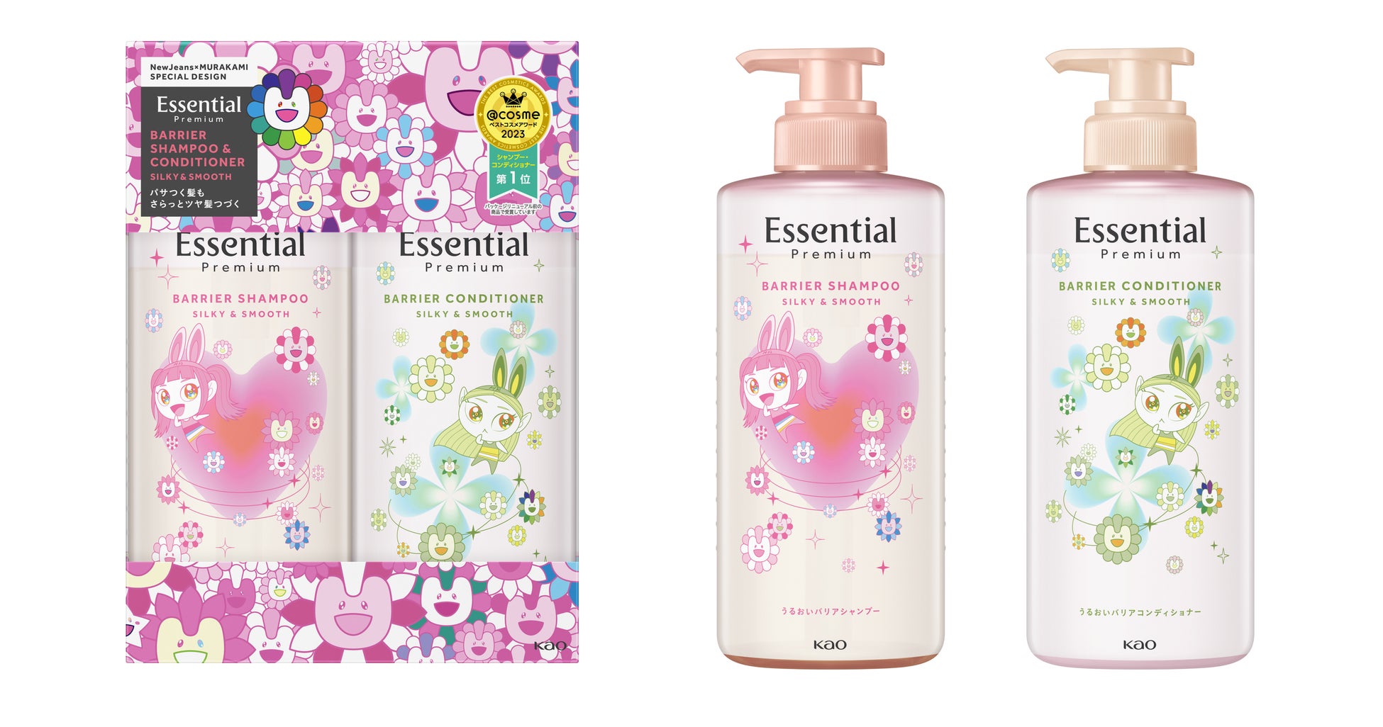 花王株式会社のへアケアブランド「Essential」は、「Essential Premium (エッセンシャル プレミアム)」シリーズから、広告モデルであるNewJeansと世界的アーティスト・村上隆さんがコラボした「NewJeans×MURAKAMI」バージョンのデザインボトルを3月29日から数量限定発売いたします。