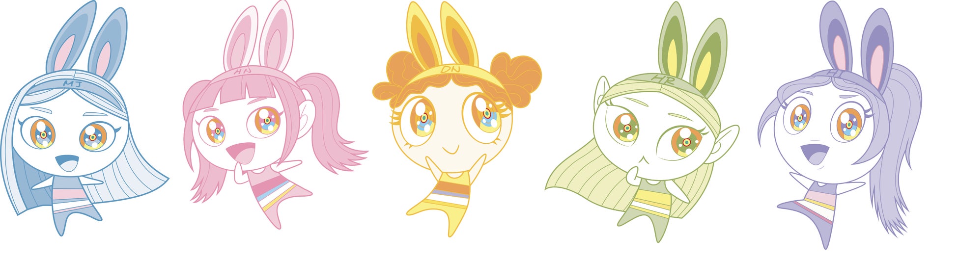 Essentialの広告モデルNewJeansと現代美術家 村上隆とのコラボキャラクター