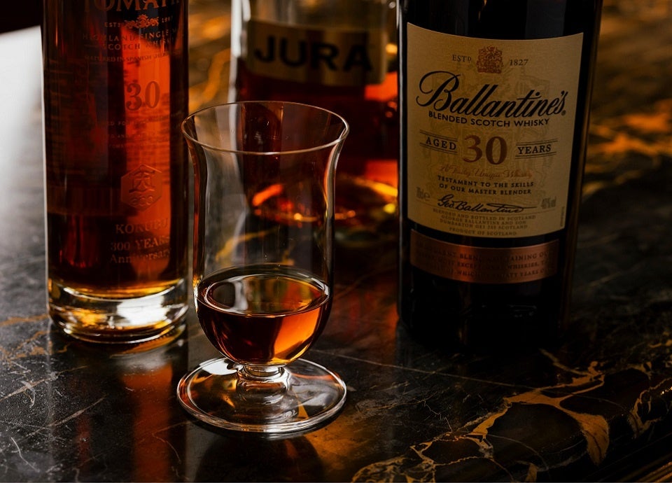 長い年月をかけて熟成されるウイスキーは、樽の中で蒸発し、原酒は少しずつ量を減らしていきます。30年間熟成すると樽の中の原酒は3割程度になると言われています。この度、そんな希少な30年もののウイスキーを3種ご用意。ホテル最上階からの絶景とともに、ゆっくりとご堪能ください。