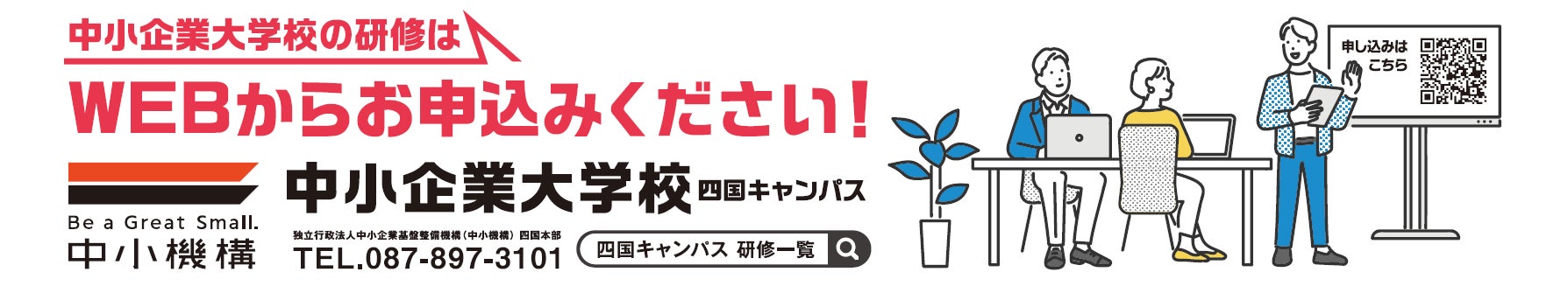中小機構(独立行政法人中小企業基盤整備機構)四国本部は、中小企業向け研修メニュー「中小企業大学校四国キャンパス」2025年度の受講受付を本日より開始しました。