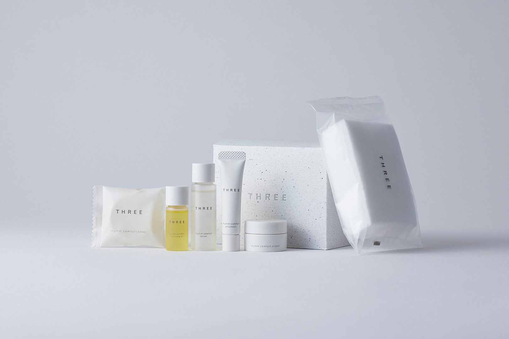 また、新たに9月中旬(予定)より、ラグジュアリールーム、特別室ザ・テラスの各客室に、「NEW ATTITUDE FOR BEING NATURAL(ナチュラルはこんなにも自由になれる)」をコンセプトとして2009年に誕生した日本のコスメブランド「THREE」の「リズムコンフォート スキンケアセット R」を設置します。厳選された素材でバランスよく調合された精油や、国産原料の植物をはじめとする自然の恵みを存分に生かした THREE のホリスティックケアを客室にてお楽しみいただけます。