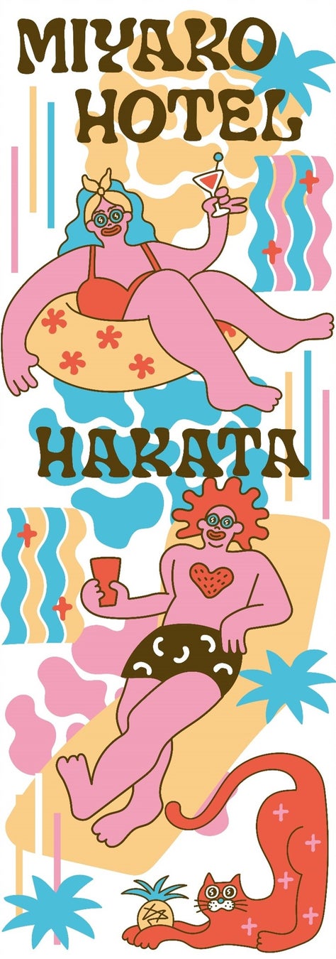 toyamegさんより:都ホテル 博多の屋上プールで楽しんでいる様子をデザインしました。ホテルの外観やライトアップも意識しました。