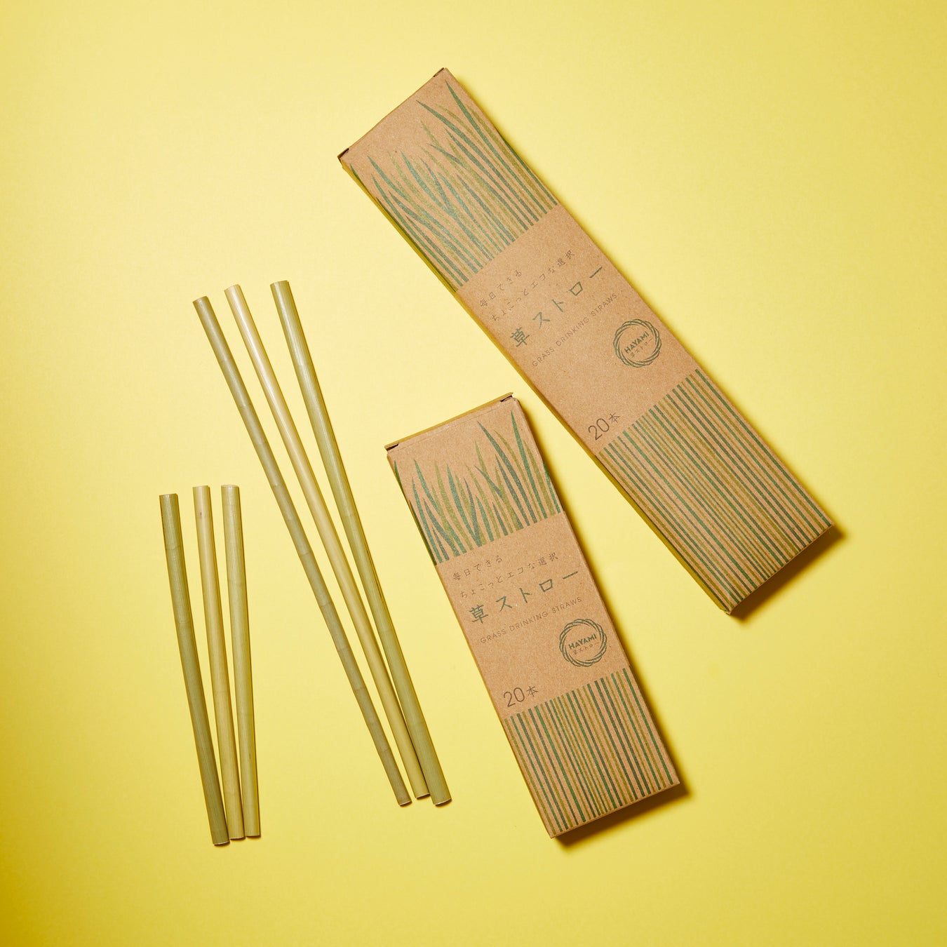 完全生分解性・自然由来の草ストロー。製造過程で一切化学物質を使用しておらず、原材料には植物しか使用していないため、使用後は、動物のエサや堆肥化することができ、生活の中で循環サイクルを構築することができる。