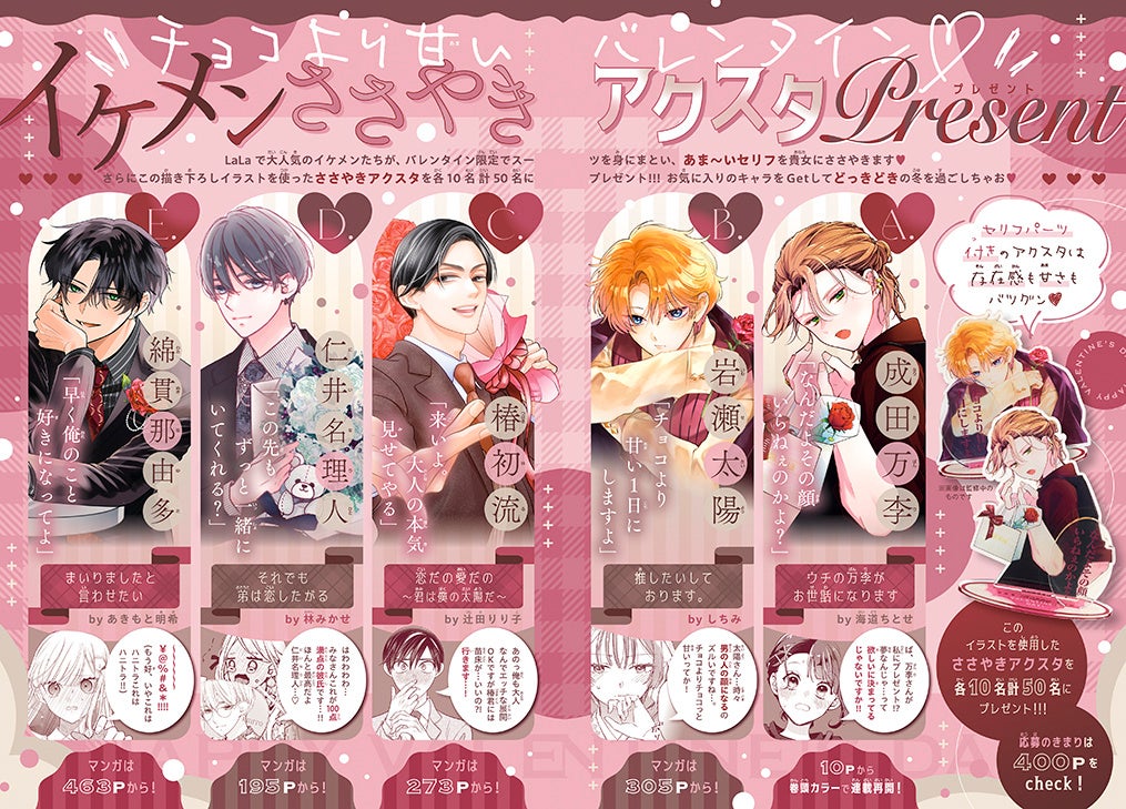 LaLaで大人気のイケメンたちが、バレンタイン限定でスーツを身にまとい、あま~いセリフを貴女にささやきます♡