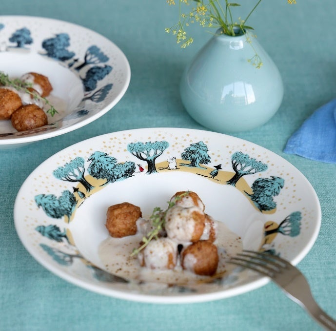 『ムーミン谷の十一月』の挿絵をモチーフにした「Starry Valley」柄はこれからの冬のシーズンのギフトにもぴったりです!特におすすめのアイテムはリムプレートとマグカップ。大切な誰かへの贈り物や、自分へのご褒美に選んでもらえたらうれしいです。
