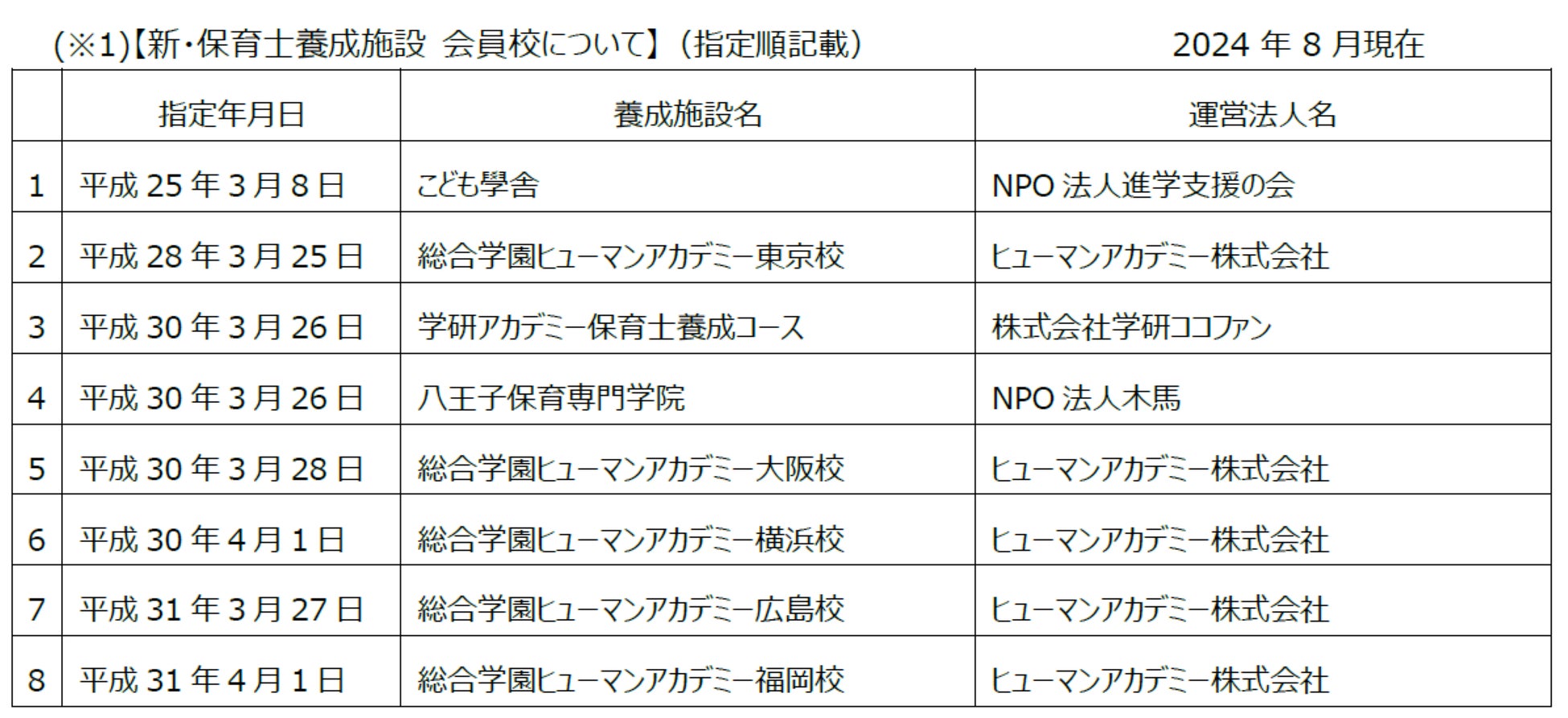 新・保育士養成施設は、全国に660以上ある厚生労働大臣指定保育士養成施設の中で、学校法人などが運営する学校教育法の学校(以下「学・保育士養成校」)ではなく、NPO法人や株式会社が運営する、保育士資格取得に特化した保育士養成施設で構成される協議会です。
