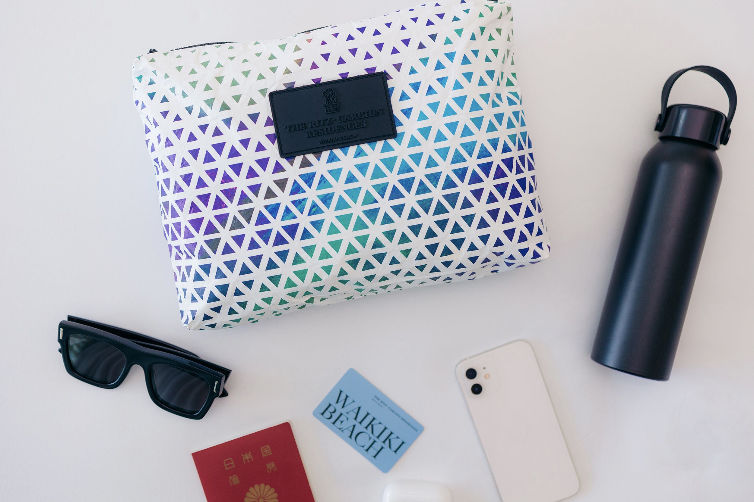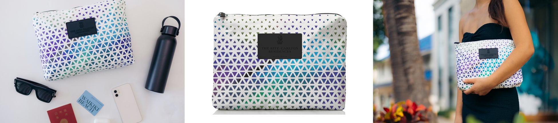 ザ・リッツ・カールトン・レジデンス ワイキキビーチは本年末まで、ハワイ発のローカル・ブランドの中でも特にハワイ色が際立つバッグ・ブランド、ALOHAコレクションとコラボレーションして開発したオリジナルのミドルサイズ・ポーチを、当館のスイート・カテゴリーの客室にご滞在の日本からのお客様限定でプレゼントいたします。ポーチは、古代ハワイ諸島においてひとつの共同生活区域として規定されていた、山頂(マウカ)から海岸(マカイ)までの渓谷エリア(アフプアア)をモチーフにデザインしております。